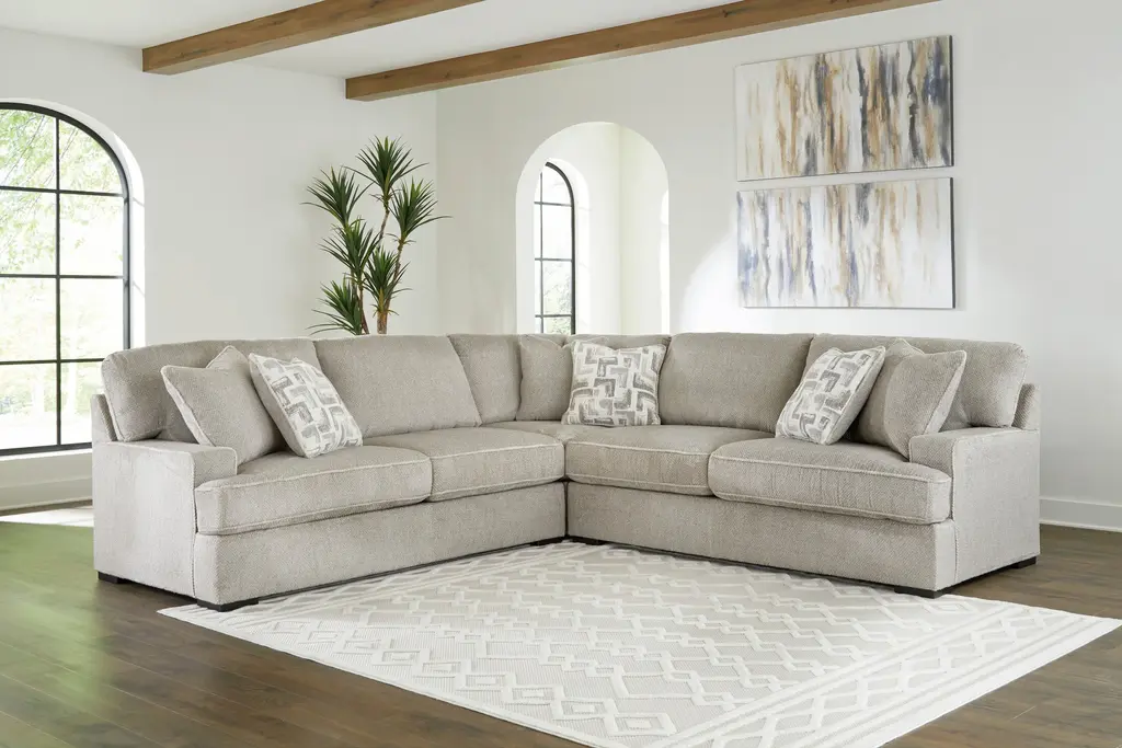 Contemporary and casual. Warm and inviting. The Lelandwood 3-Piece Sectional is a style you'll love living with thanks to its neutral color, ultra-deep seats, clean lines, and wide-track arms. Fits you and all your guests no problem, too, making it the perfect entertaining spot.