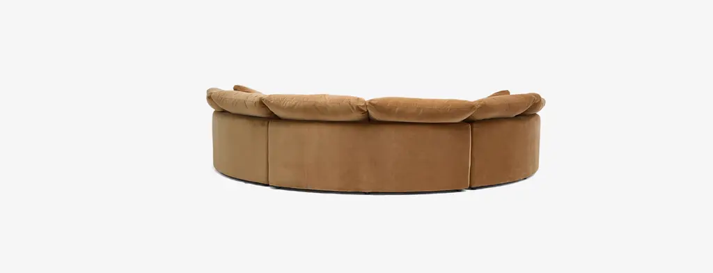 The ultimate way to lounge has taken on a new shape! This overstuffed semicircle sectional boasts a curved frame, laid-back modern style, and a pillowed back to help you get cozy at every angle. Revamp the way you relax with this modern curved sectional sofa, complete with an overstuffed & arrangeable cushion back and a low-slung, deep seated frame that makes for a seriously enticing seat.