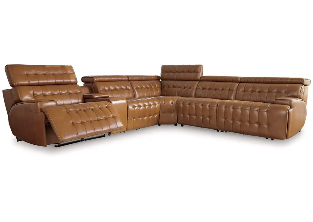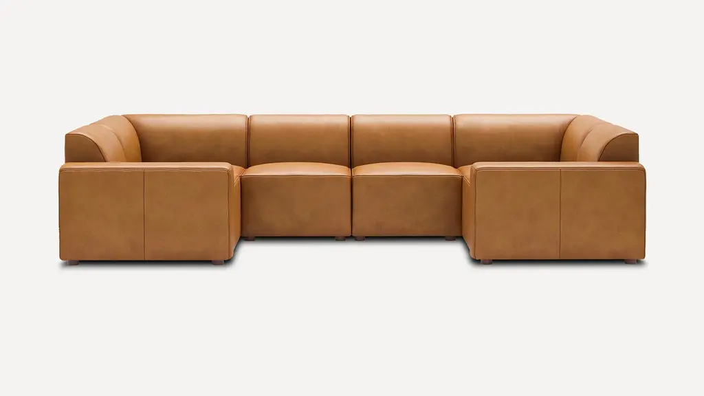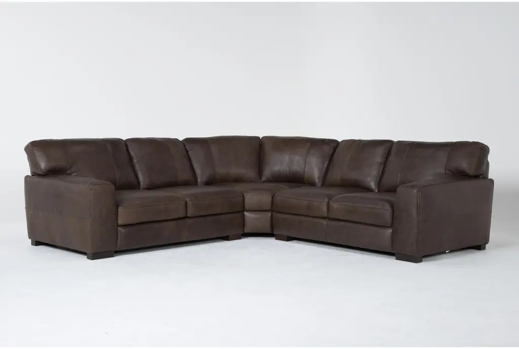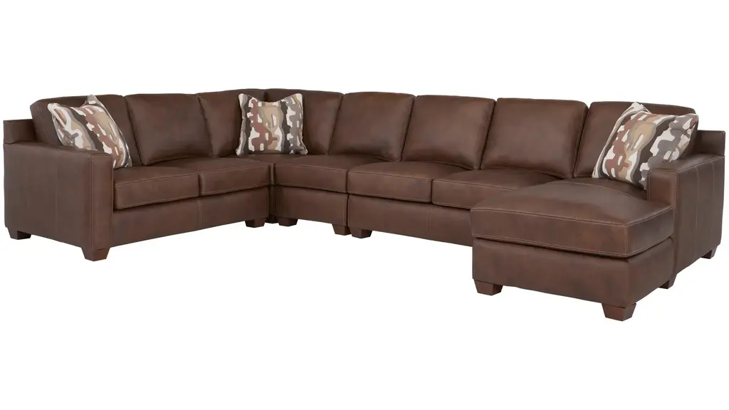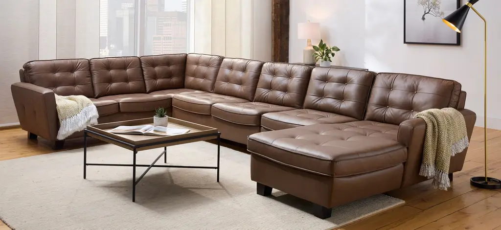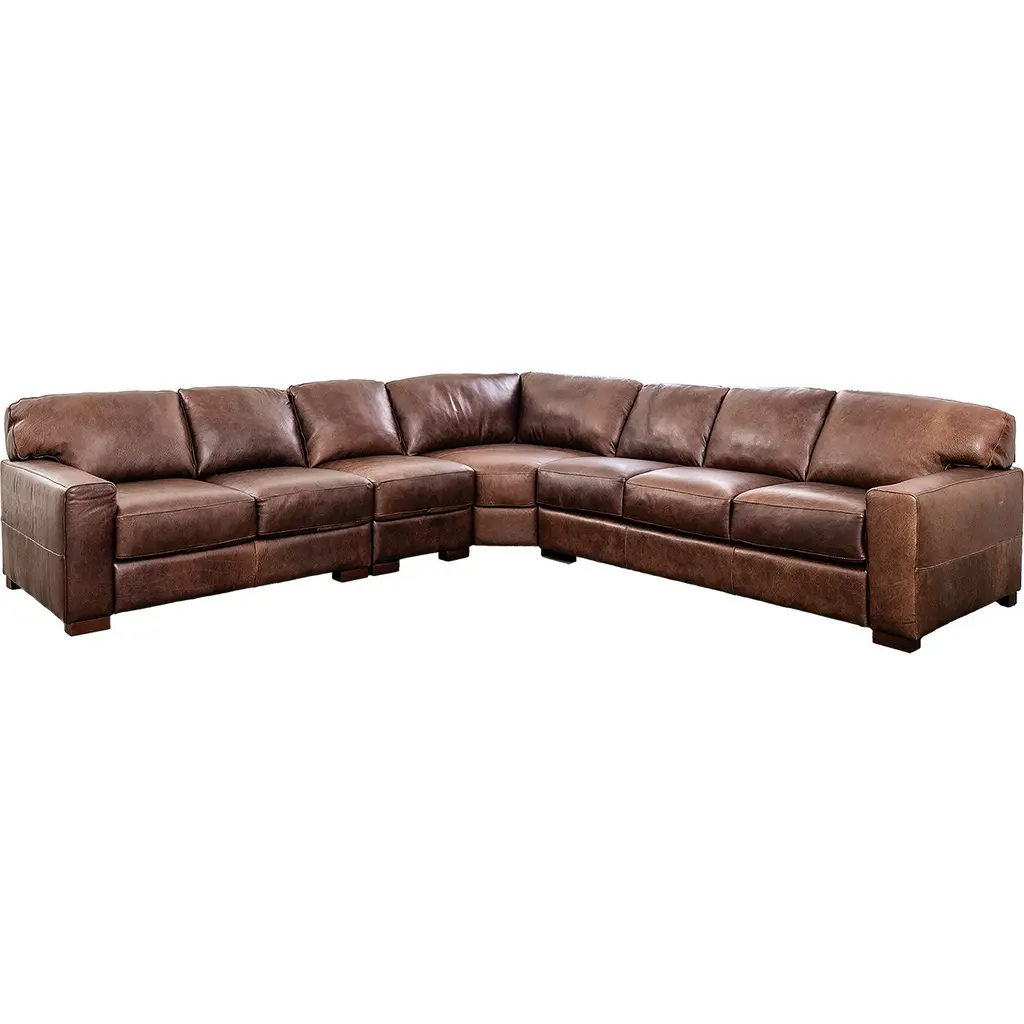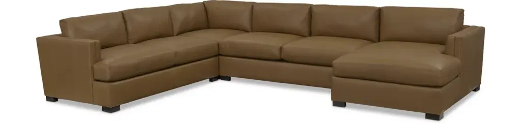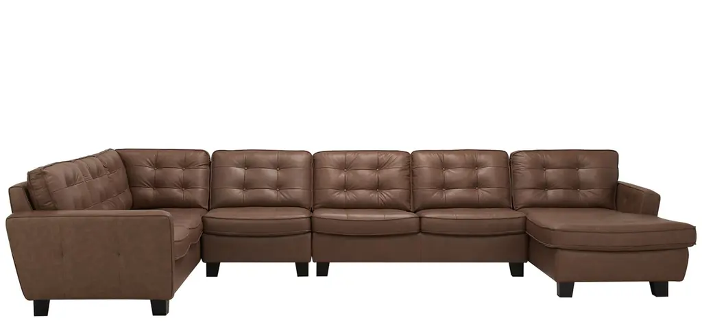 Relax with class on the Bryce 4-piece sectional. Soft brown leather seating is so inviting, particularly with its stylish track arms and button tufting. There's plenty of room to stretch out and unwind on the Bryce!Relax with class on the Bryce 4-piece sectional. Soft brown leather seating is so inviting, particularly with its stylish track arms and button tufting. There's plenty of room to stretch out and unwind on the Bryce!