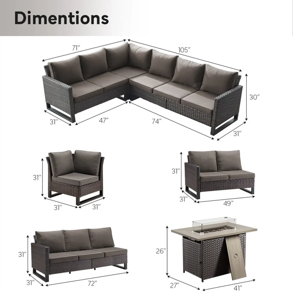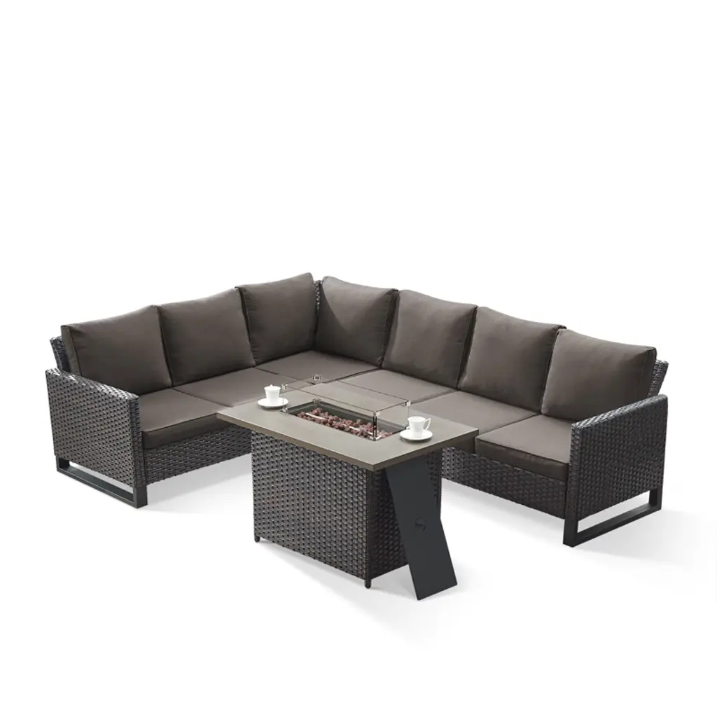 Transform your backyard into a luxurious retreat with the Buenhomino Outdoor Sectional. This versatile 4-piece L-shaped set combines deep comfort and durable, all-weather wicker with a spectacular 2-in-1 centerpiece: a powerful 50,000 BTU fire pit that converts into a practical coffee table. Perfect for creating unforgettable moments of relaxation and entertainment.