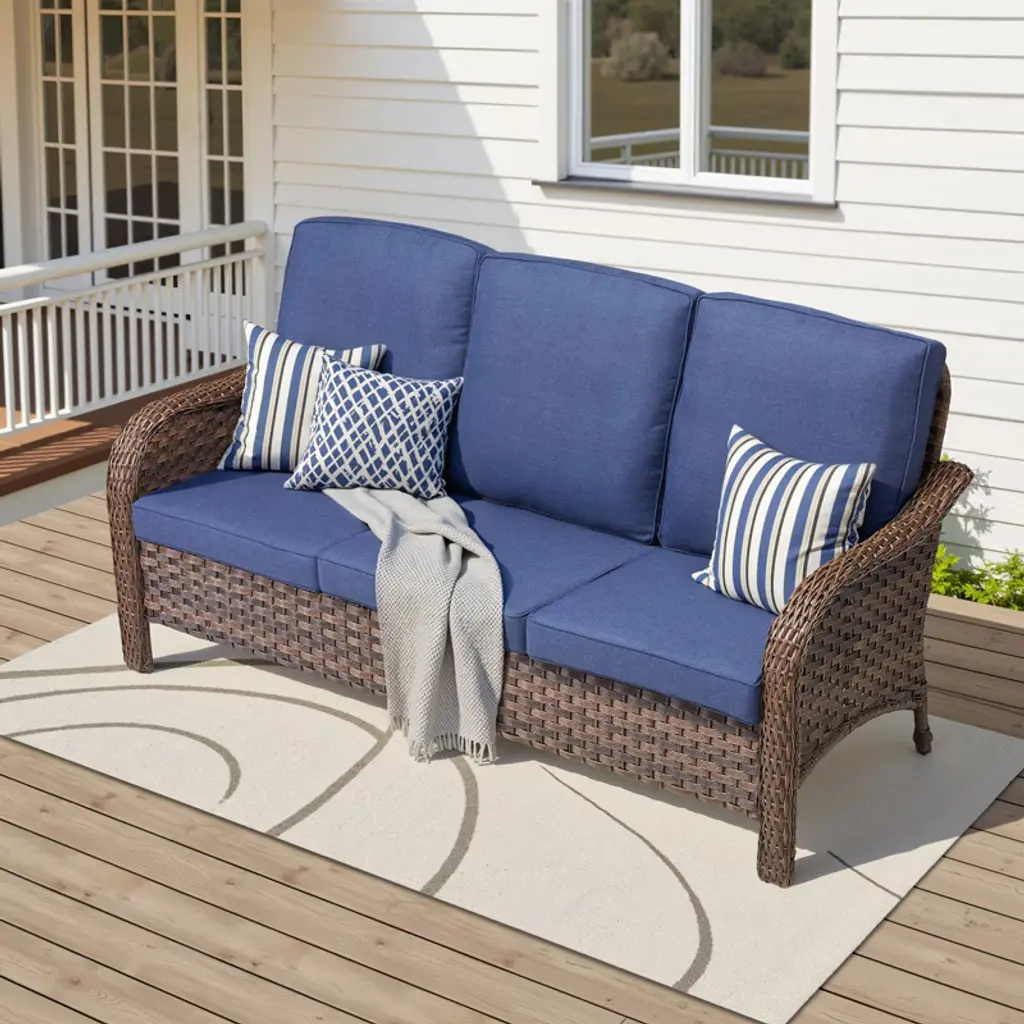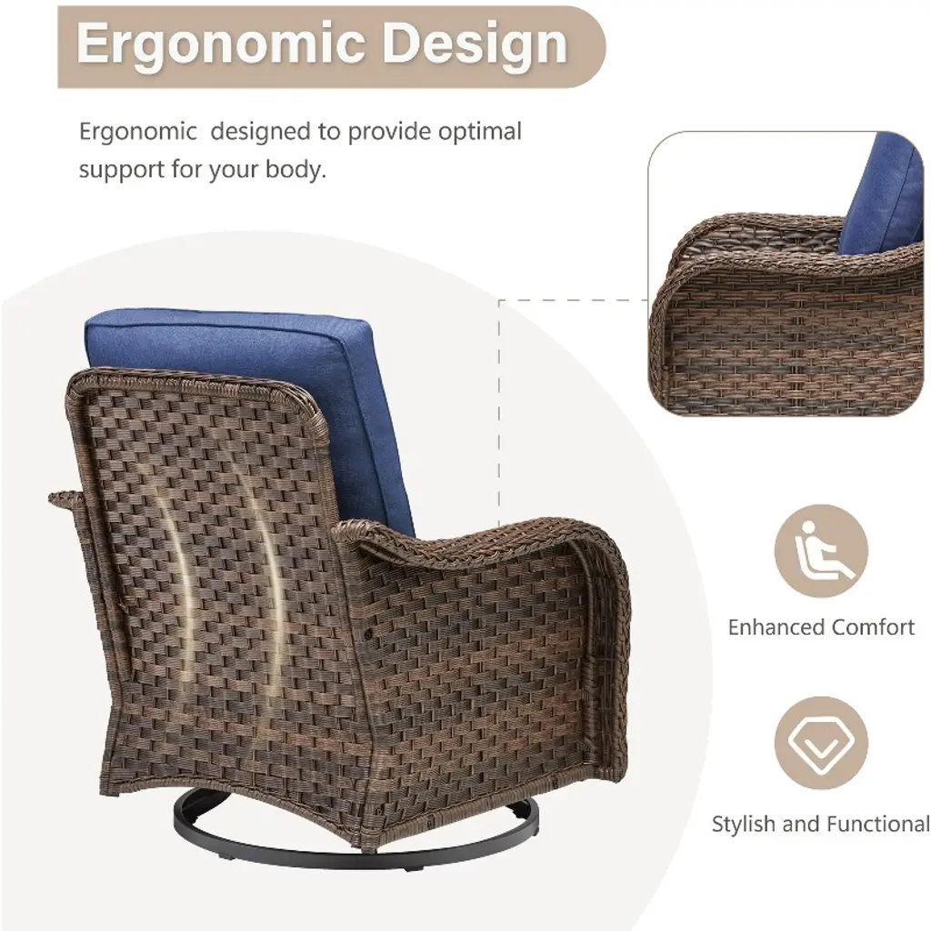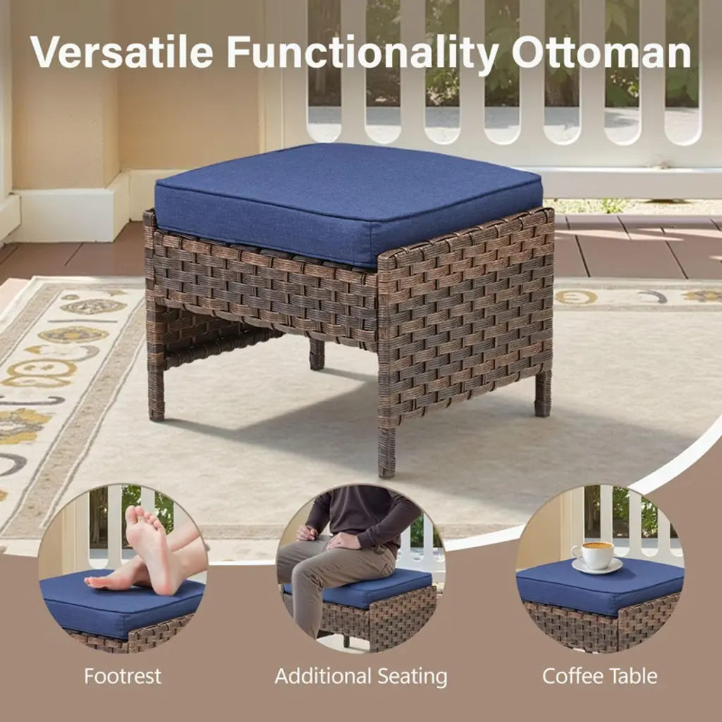 Transform your outdoor space with our premium 6 Piece Patio Furniture Set! This complete wicker patio conversation set features 2 deep-seat sofas, 2 swivel chairs, and 2 ottomans - perfect for relaxing or entertaining. The 360¡ã rotating chairs with 350lb capacity and plush high-density cushions provide exceptional comfort, while the weather-resistant PE rattan and powder-coated frame ensure lasting durability. Easy to assemble and maintain, this stylish outdoor sofa set is ideal for patios, gardens, or poolside lounging!