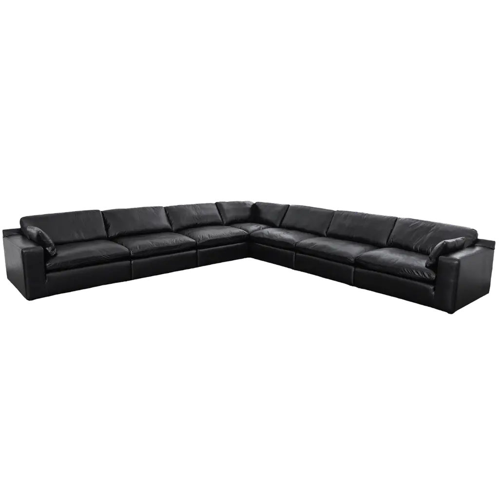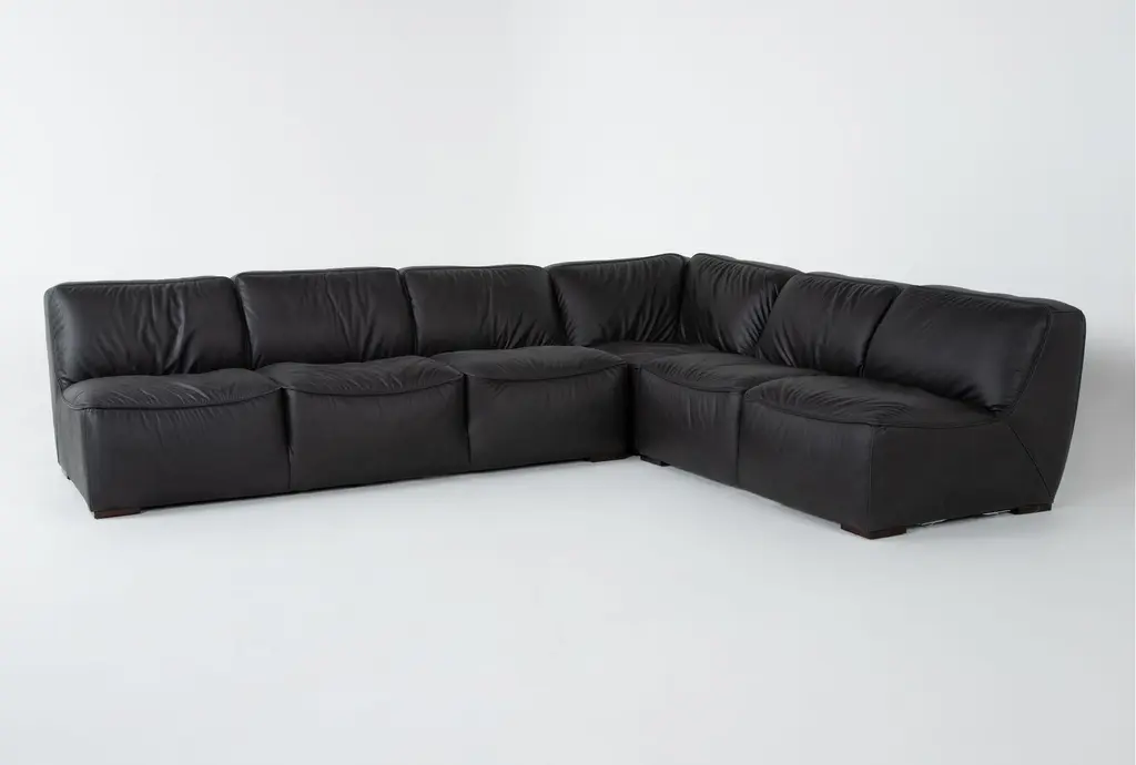 Introducing the Burton Dark Grey/Black Leather 132" 3 Piece Modular L-Shaped Sectional, a perfect addition to your modern living room. This sectional is designed with a reversible orientation, allowing you to customize its layout to fit your space. The deep-seated, oversized design ensures maximum comfort for you and your guests.