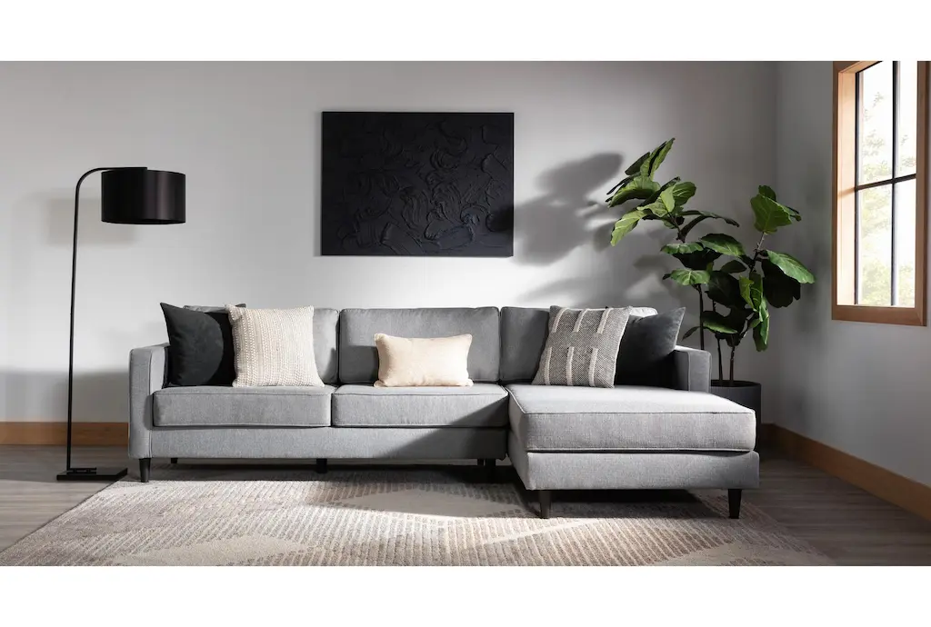 Calais Gravel Grey Modern Modular 112" 2 Piece Sectional with Right Arm Facing Chaise