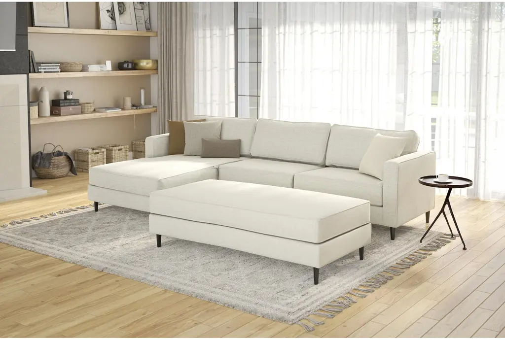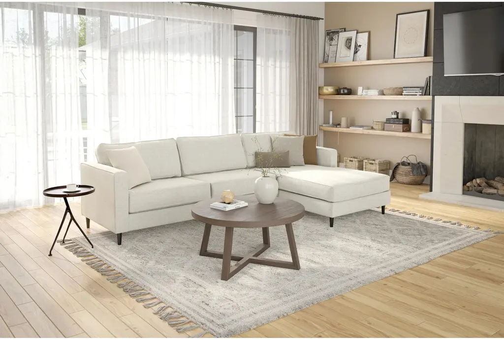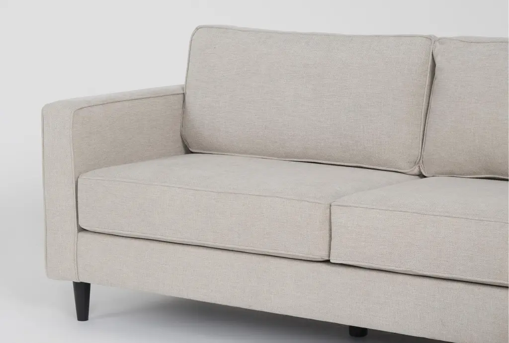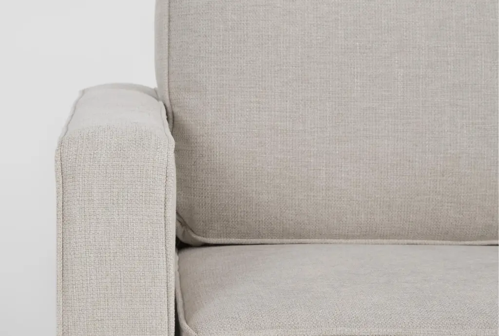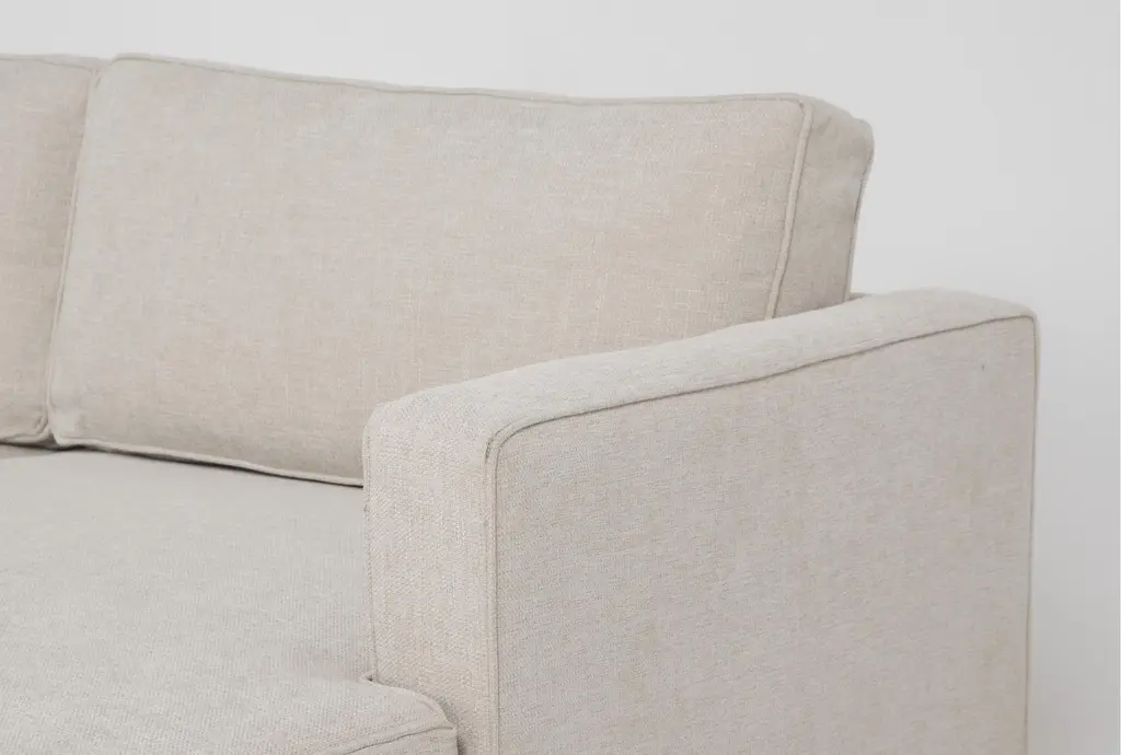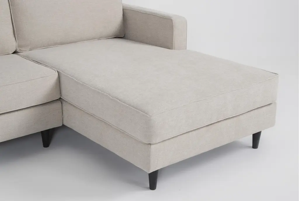The Calais III Linen 113" 2 Piece Sectional with Right Arm Facing Chaise offers a comfortable and stylish addition to your living room. This modern sectional features a sleek design with track arms and tapered legs, making it a perfect centerpiece for contemporary spaces. The linen-colored fabric, made from 100% polyester, ensures durability and easy maintenance.