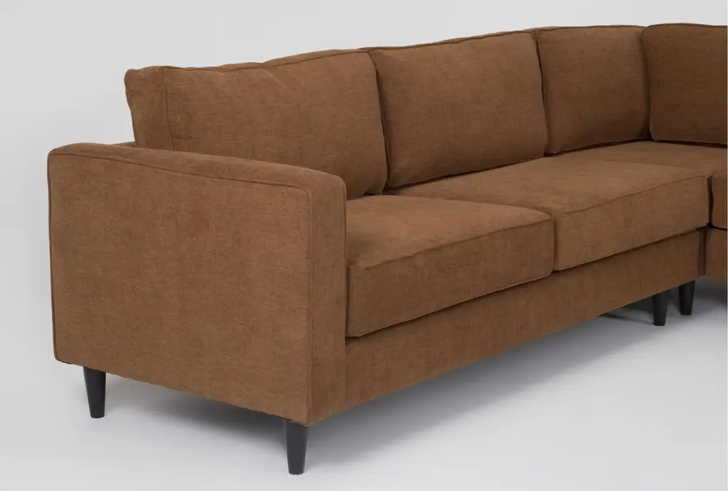 Fans of ease and simplicity will be impressed with the sleek, streamlined nature of our Calais sectional, which is designed and made exclusively by Living Spaces. Track arms and a tailored frame create a sense of sophistication, while tapered legs point the design in a mid-century modern direction. Available in multiple colors, you can pick the hue that suits you and your living room best.