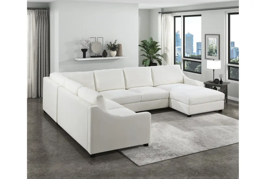 Callie Ivory White Fabric 4 Piece U-Shaped Sectional with Right Arm Facing Chaise