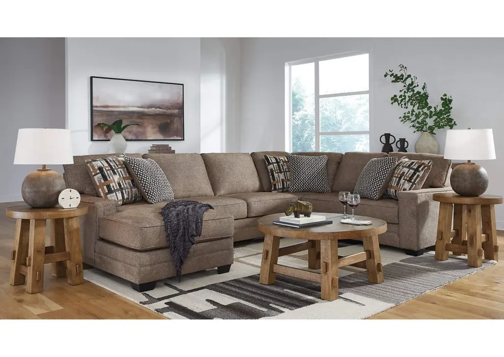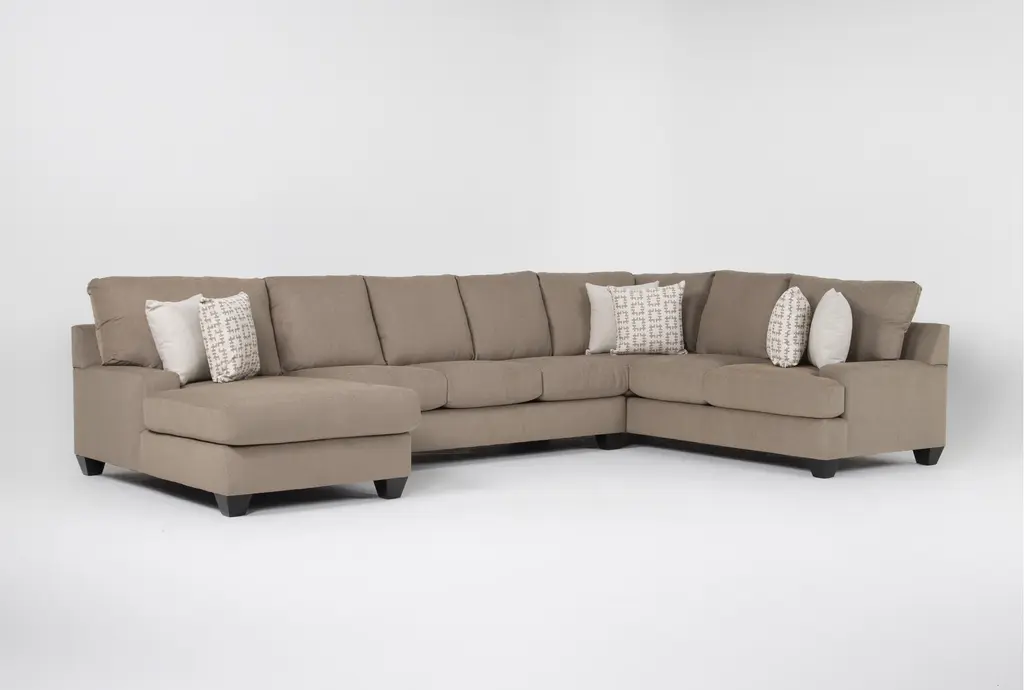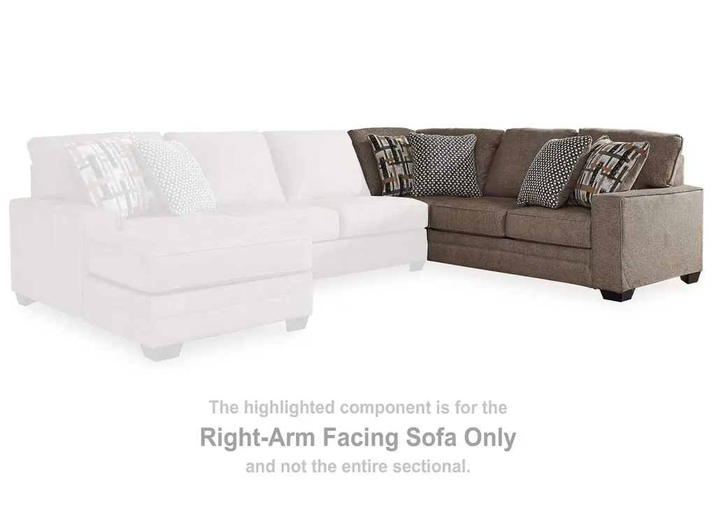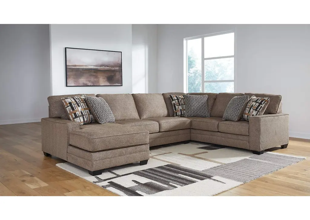 Classic, contemporary and cozy. With the Cannonbrook sectional with chaise, relaxing in style is made easy. It takes a warm and inviting approach to versatile color, incorporating posh character into your space with menswear-inspired upholstery. Graphic accent pillows bring fresh flair to the look. Living room lounging has never been so comfortably chic. Weight 353.000 lbs. (158.85kgs.)