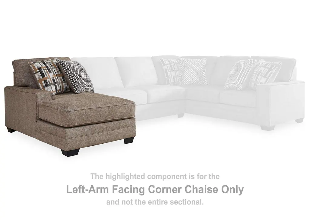Classic, contemporary and cozy. With the Cannonbrook sectional with chaise, relaxing in style is made easy. It takes a warm and inviting approach to versatile color, incorporating posh character into your space with menswear-inspired upholstery. Graphic accent pillows bring fresh flair to the look. Living room lounging has never been so comfortably chic. Weight 305.000 lbs. (137.25kgs.)