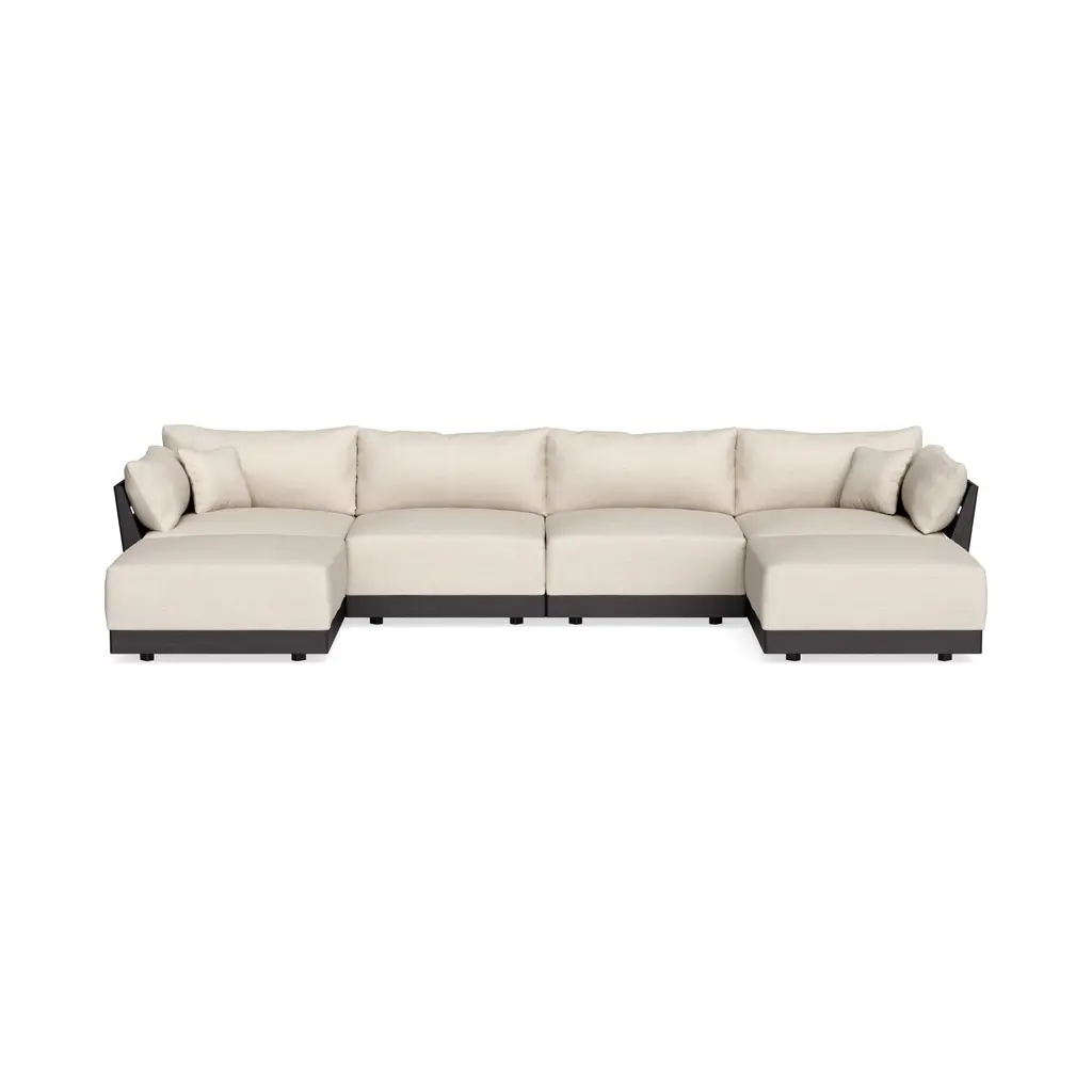 A bold architectural sensibility defines Cape Town by Jan te Lintelo of the Netherlands. The relaxed profile features a low and deep platform seat designed for lounging. Angular arms and a wedge back strike a sculptural pose, while an inset plinth base suspends the cantilever form. Comfortable, supportive cushions crafted of quick-dry reticulated foam offer all-weather performance. Modualar components are available individually, allowing you to customize the configuration of your choice. ALSO AVAILABLE IN TEAK SHOP THE ENTIRE COLLECTION