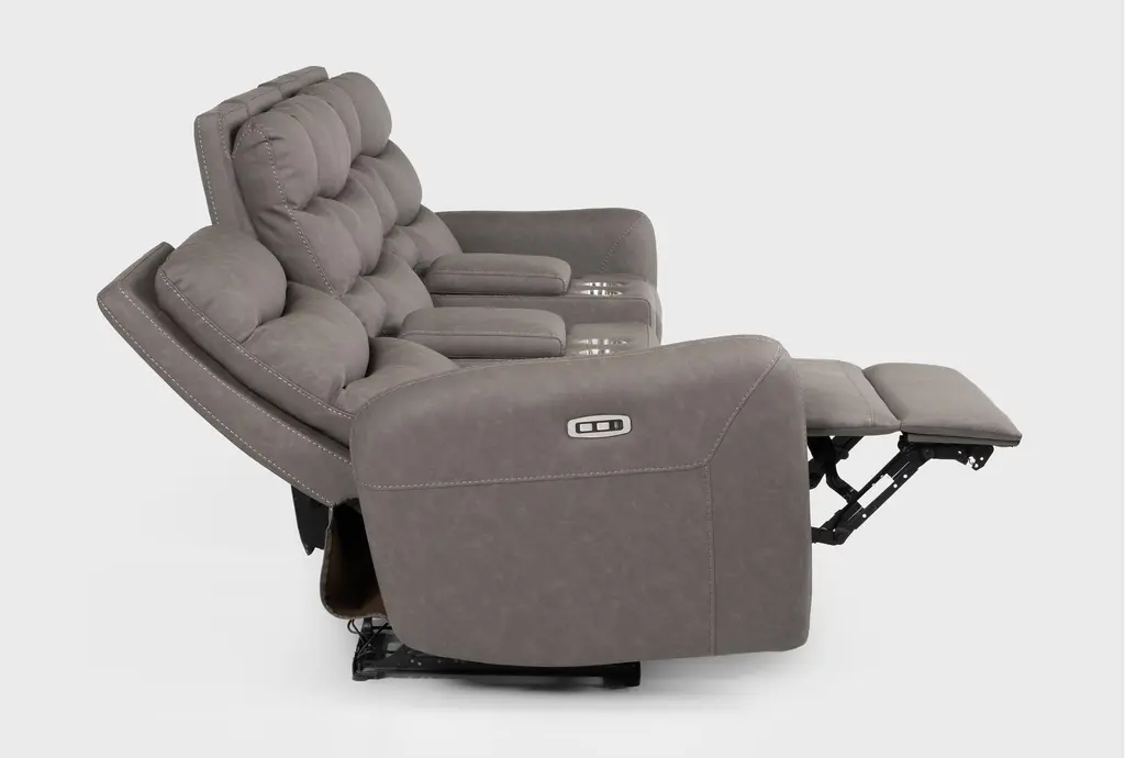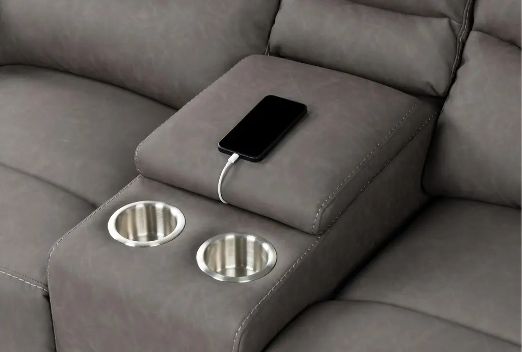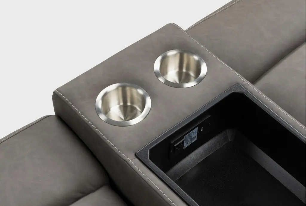 The Casimir Charcoal 5 Piece Fabric 103" Power Reclining Theater Sectional with USB is the ideal addition to your living room for both comfort and functionality. Designed in a casual style, this sectional features a power reclining mechanism that allows you to customize your seating position with ease. The charcoal color and high performance fabric blend seamlessly into any décor, offering a timeless and classic look.