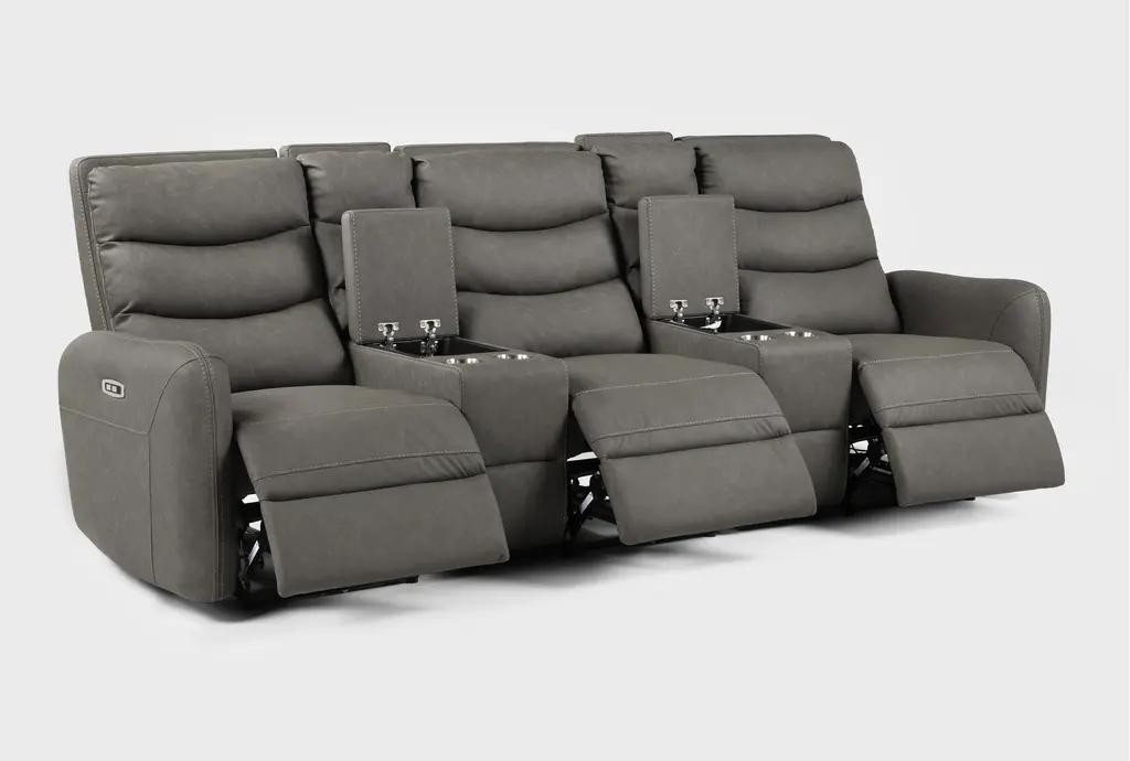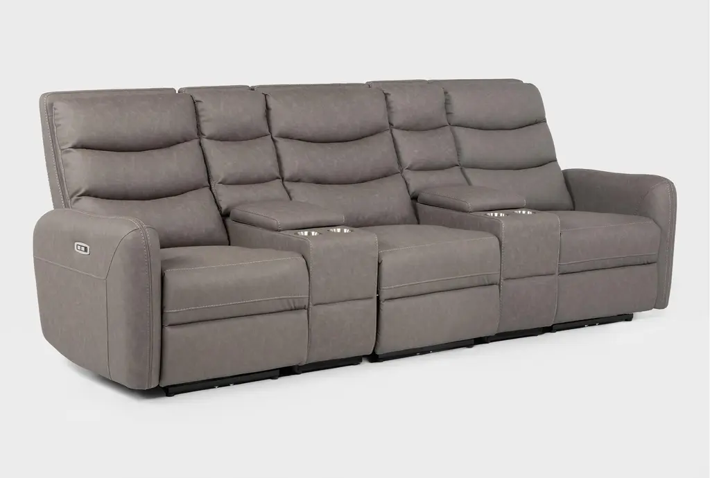 Casimir Charcoal 5 Piece Fabric 103" Power Reclining Theater Sectional With Usb