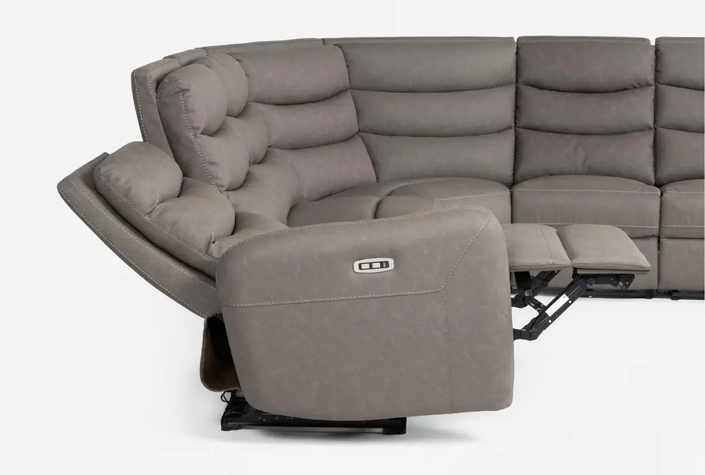 The Casimir Charcoal 6 Piece Fabric 116" Power Reclining Sectional offers the perfect blend of comfort and functionality for your living room. Upholstered in durable fabric, this sectional features a reversible design and medium comfort level to suit your relaxation needs. The built-in USB ports add a modern touch, ensuring your devices are always charged while you unwind.