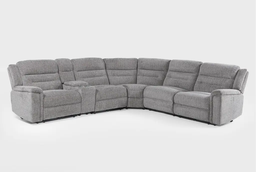 The Caspian Beige 105" 5 Piece Power Reclining Modular Sectional is the perfect addition to your living room. Its casual style and neutral marble color make it a versatile choice for any decor. The sectional features a reversible orientation, allowing you to customize it to fit your space.