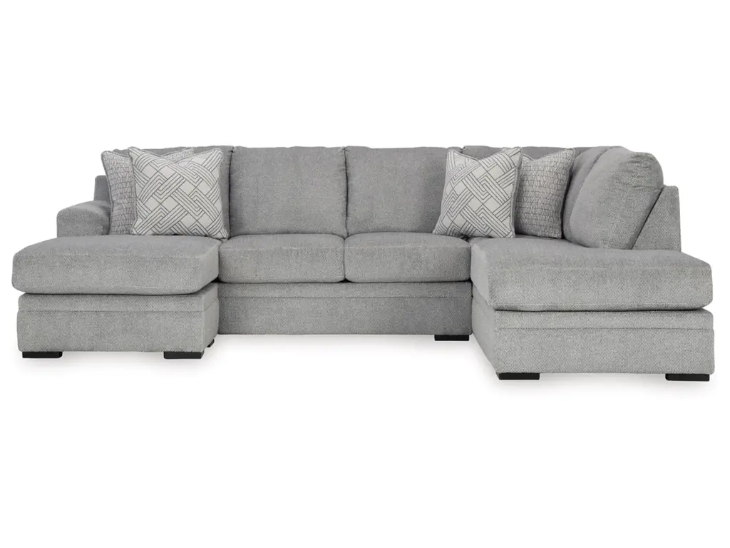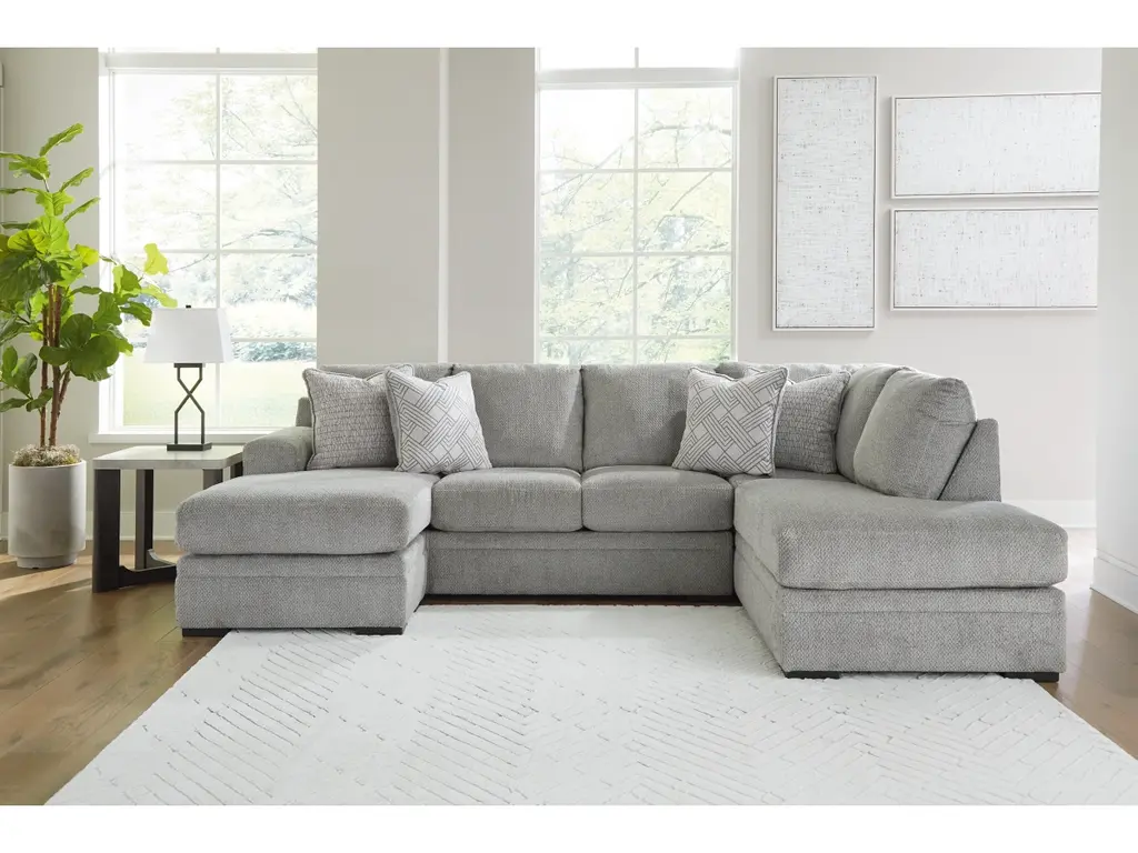 Don’t be limited by a lack of space. The Casselbury sectional makes family movie nights and get-togethers with friends all the more cozy. With its double-chaise configuration, everyone has a spot to lounge. A trendy gray hue offers the contemporary style you crave. So sit back and relax—this functional piece is ready to indulge you with everyday comfort.