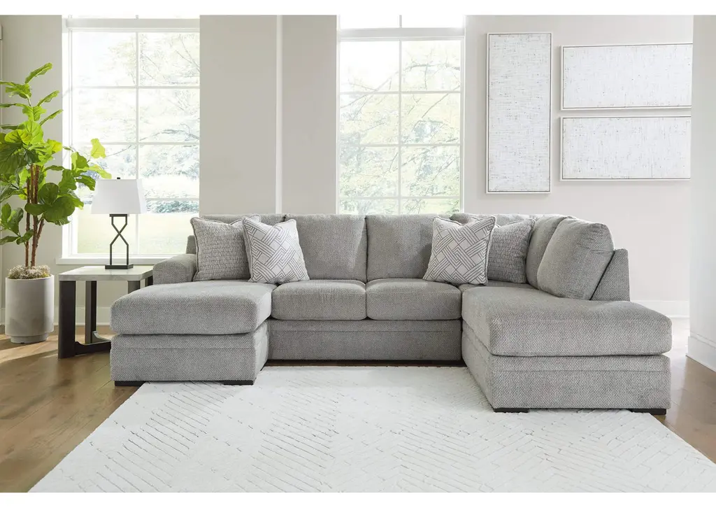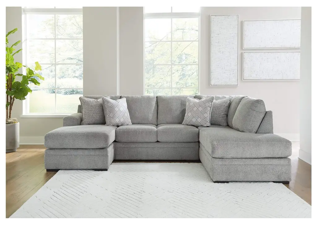 Don’t be limited by a lack of space. The Casselbury sectional makes family movie nights and get-togethers with friends all the more cozy. With its double-chaise configuration, everyone has a spot to lounge. A trendy gray hue offers the contemporary style you crave. So sit back and relax—this functional piece is ready to indulge you with everyday comfort. Weight 330.000 lbs. (148.5kgs.)