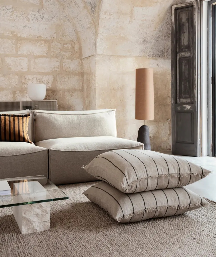 The embracing, beanbag-inspired shape of the low-slung Catena sofa is generously dimensioned for all-out relaxation and coziness: we call it ‘low living’. The name Catena is inspired by the catenary curve, a u-like shape that a chain or cable adopts when supported only at its ends, and which is mirrored in the soft curves and top-stitched seams of the Catena sofa. The homely, module-based designs are made with innovative microcellular foam that ensures maximum comfort as well as durability. The series is comprised of individual modules that can be combined in multiple ways to create the desired expression.