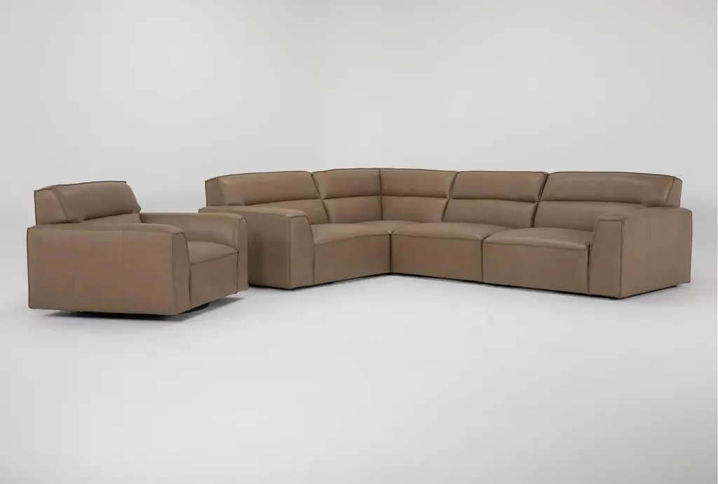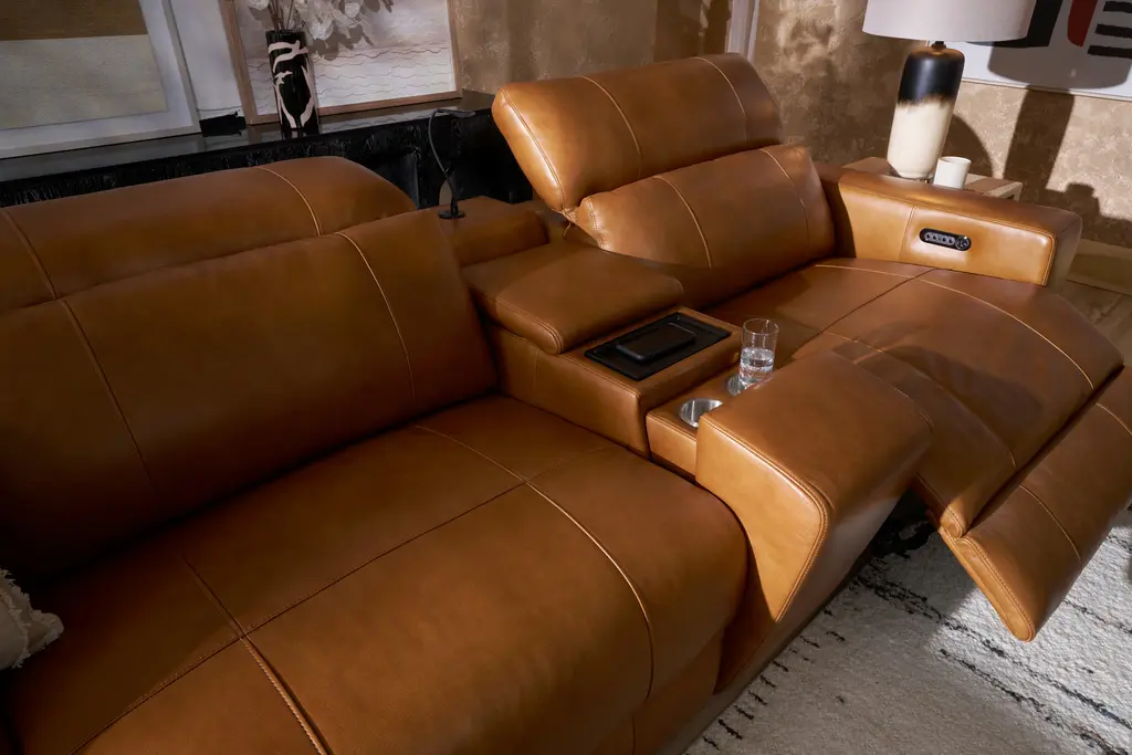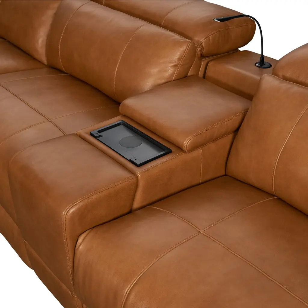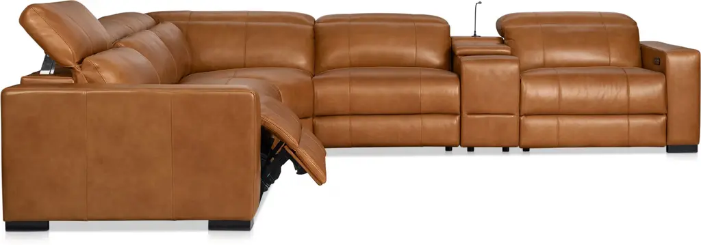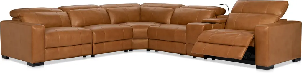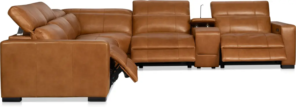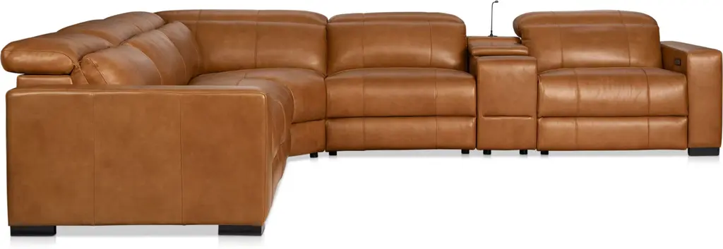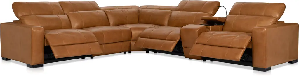 Chapman 6-Piece Dual-Power Reclining Sectional With Console - Saddle