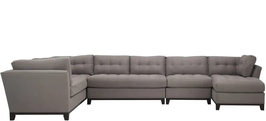 Take a trip uptown without leaving your living room with the stylish Cityscape Sectional. Button tailoring and a soft suede-like touch add to the luxury of soft yet supportive seating and comfy loose back cushions. Available in a variety of configurations so one is sure to be perfect for your home.