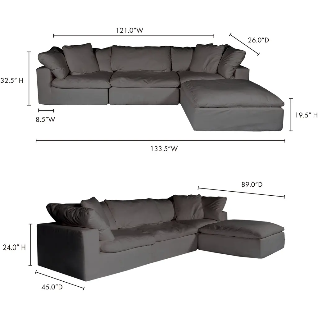 A sectional that's ready for all the messes involved in running a busy household. The Clay modular sectional is upholstered with our LiveSmart Performance Technology Fabric, that is moisture repellent, stain resistant and offers barrier protection. Its cushions are filled generously with feather and fiber blend, and channeled and double wrapped to maximize durability. The the top eight inches cushioning is filled with foam making it ultra comfy and family friendly. Its capability of minimal maintenance and modularity allows you to stay stylish while having your desired configuration. It is truly a great value added to any space.