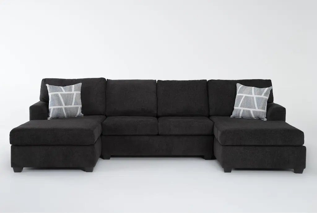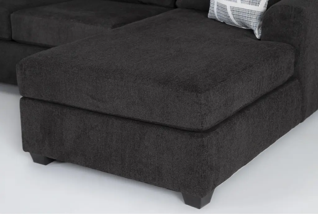 Colby Smoke Grey Black Fabric 128" 3 Piece U-Shaped Sectional With Right Arm Facing Chaise & Left Arm Facing Corner Chaise | Track Arms
