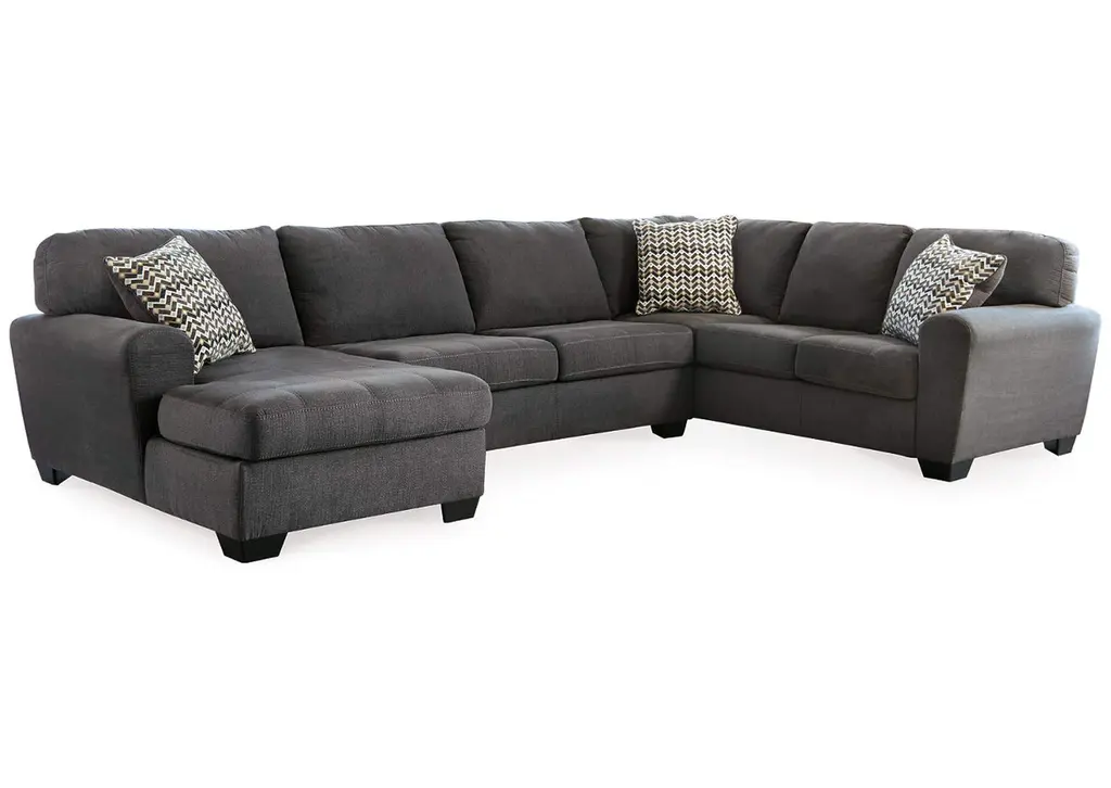 Colby Smoke Grey Black Fabric 128" 3 Piece U-Shaped Sectional With Right Arm Facing Tux & Left Arm Facing Chaise