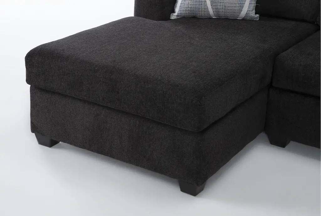 Bring comfort and style to your living room with the Colby Smoke Grey Black Fabric 128" 3 Piece U-Shaped Sectional with Right Arm Facing Tux & Left Arm Facing Chaise. This sectional offers a versatile seating arrangement, perfect for family gatherings or relaxing with friends. Upholstered in 100% polyester fabric, it combines durability with a soft, inviting feel.