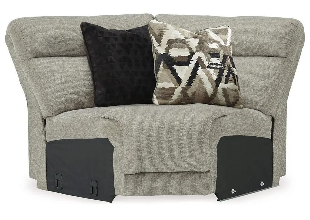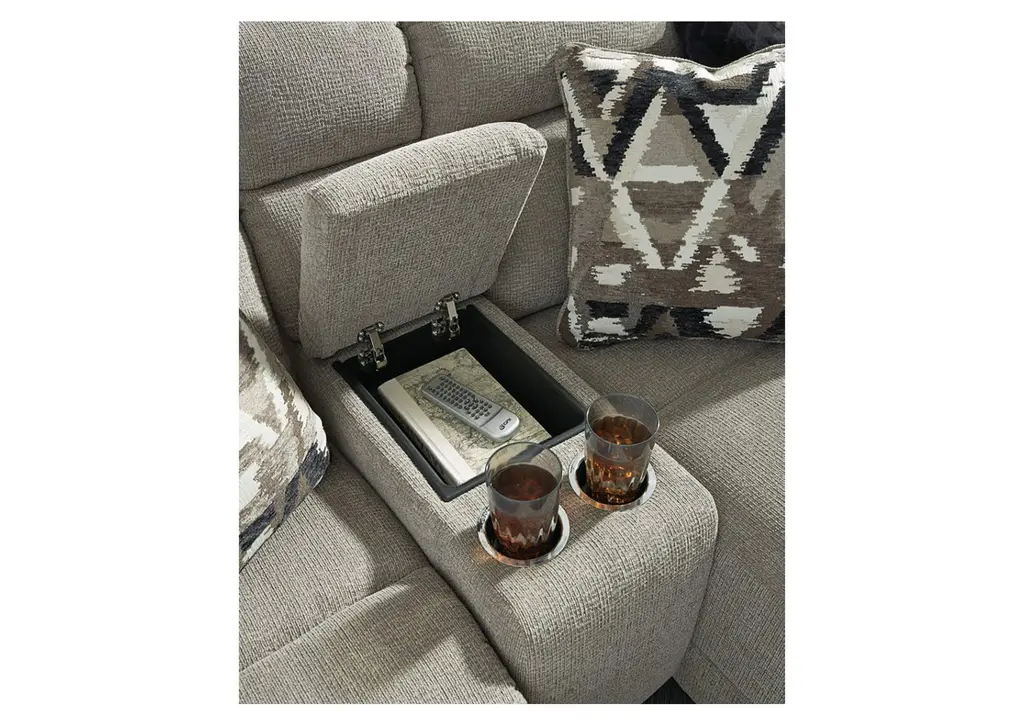 Delightfully modern. Exceptionally comfortable. When it comes to modular furniture with easy-elegant appeal, it’s hard to beat the Colleyville power reclining sectional with chaise. Wrapped in a decadently plush stone-tone fabric for neutral versatility, this chic sectional is dressed to impress with a clean-lined divided back, curved track arms and a low-profile back for a relaxed, contemporary aesthetic. Weight 486.000 lbs. (218.7kgs.)