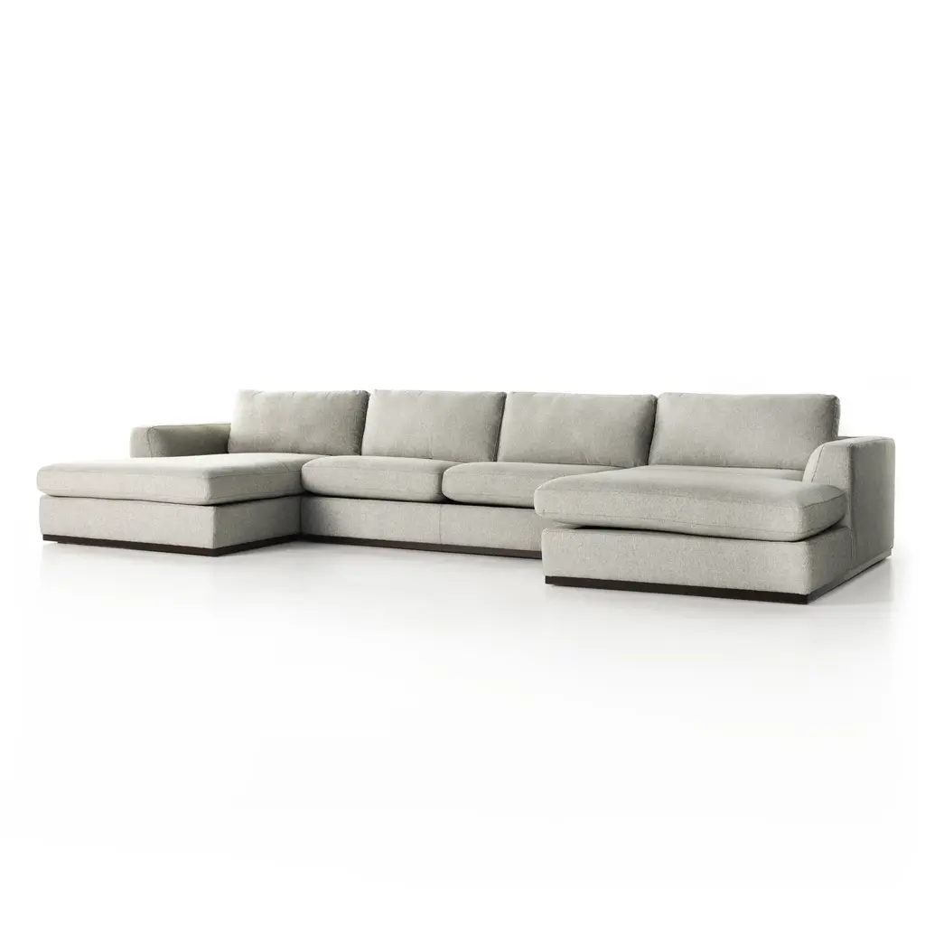 Designed for grand-scale entertaining, the Colt 3-Piece U Sectional from Four Hands is a statement in simple, sophisticated style. Crafted in Mexico, this expansive U-shaped sectional features subtly flared sides and a wrapped plinth base for a polished, substantial look. Deep, comfortable seats and loose, boxed cushions offer an inviting space for the whole family. Available in a range of options from rich top-grain leather to durable performance fabrics, it’s a timeless centerpiece for a large living room. Highlights: