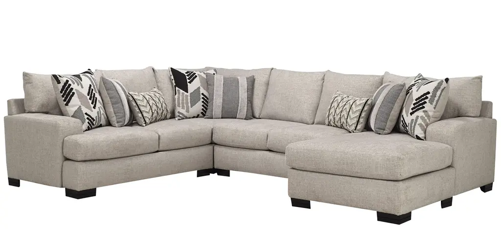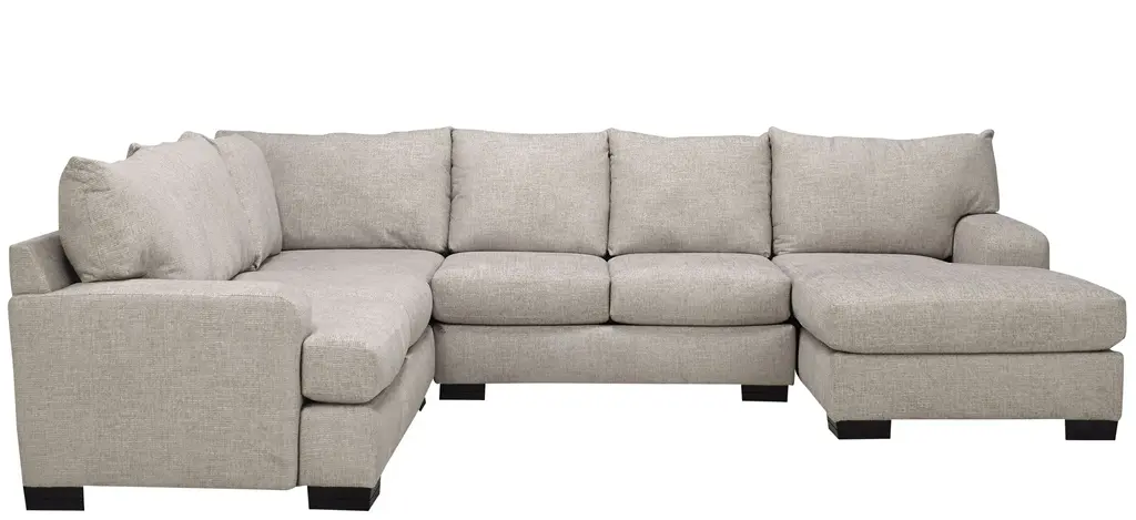 The Cooper sectional offers up versatile comfort and durability with an easygoing silhouette that complements any casual setting. Wide track arms, deep cushions, and generous seating space invite family and friends to sit back, curl up, and stay a while. The parchment color and ebony feet give it a bit of modern rustic flair that easily updates your style quotient.