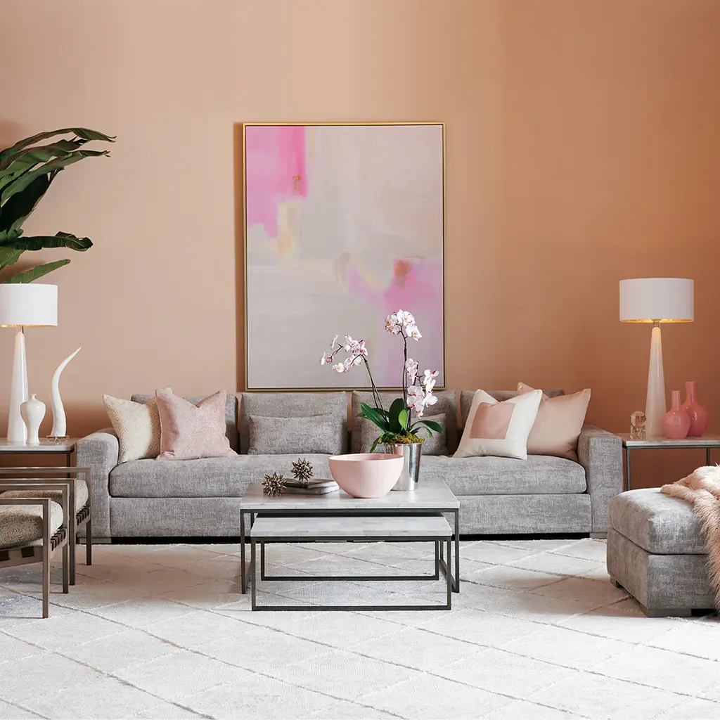 Ships In 8-10 Weeks Four 24" x 14" kidney pillows Four loose back pillows Two loose seat cushions Includes one left arm loveseat and one right arm loveseat As Shown Fabric: Castine Grey As Shown Finish: Mineral If you choose to purchase COM, once you have placed your order a customer service rep will contact you regarding where to send your fabric. Please note that current lead time is 17-19 weeks once your fabric arrives at the factory, and if unused fabric is under 1.5 yards, it cannot be sent back to you.This product can be special ordered in additional fabrics, leathers, finishes, and cushion fillings. Click here to email us for for additional information about special ordering.This image is for illustrative purposes only. The colors shown are accurate within the constraints of lighting, photography, and the color accuracy of your screen.