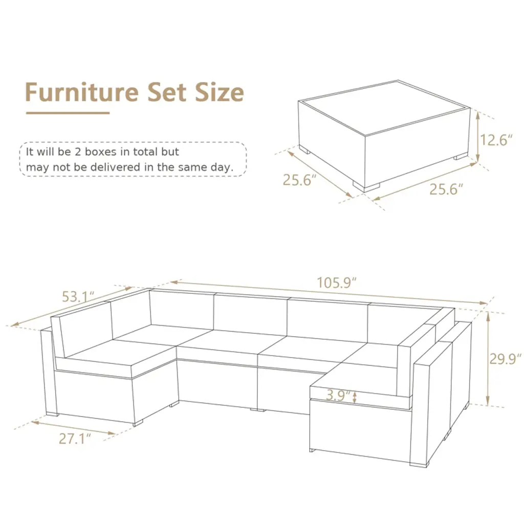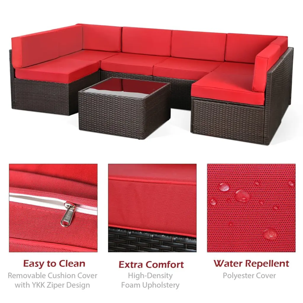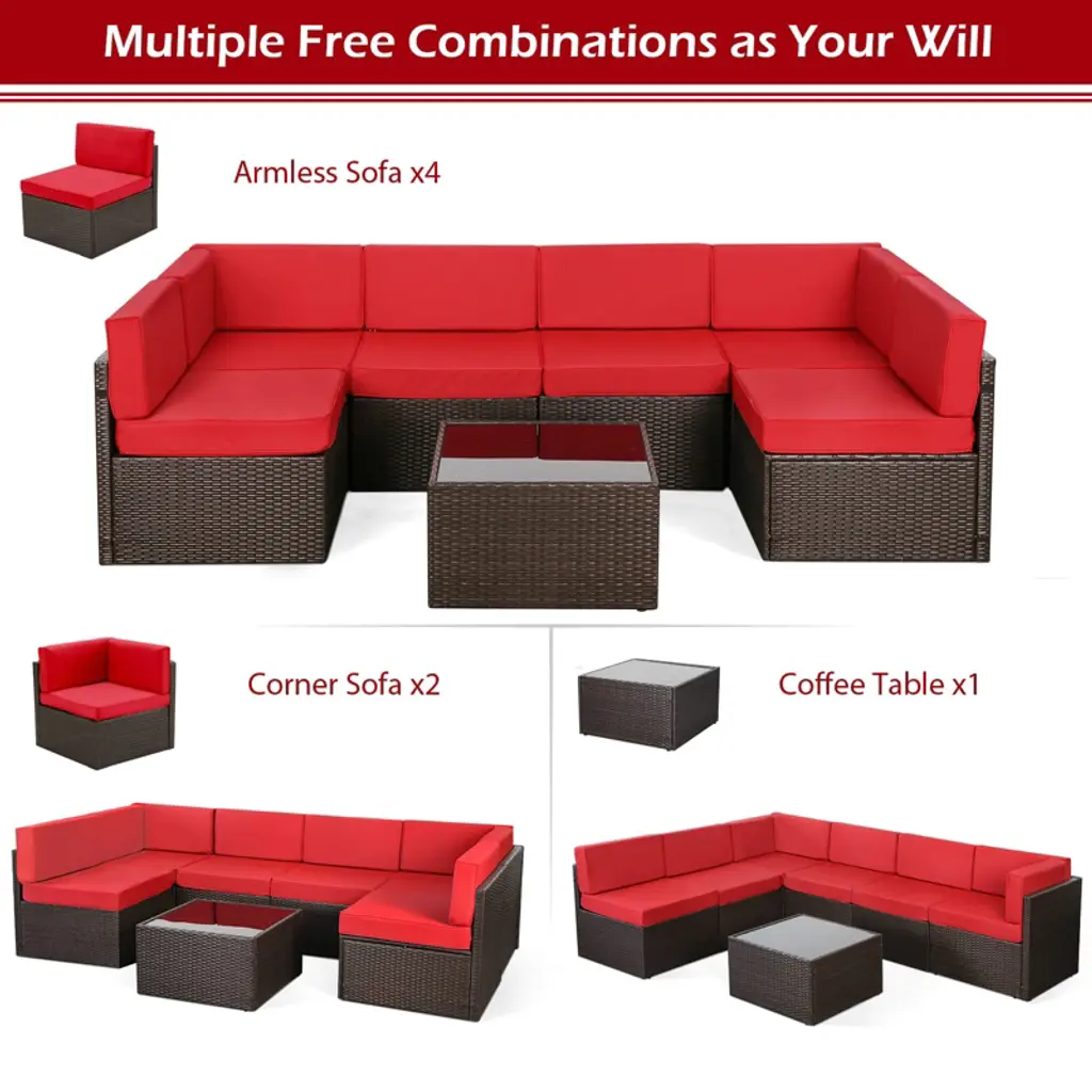 Cowlown 7 Piece Patio Pe Rattan Wicker Sofa, Outdoor Sectional Furniture Chair Set With Cushions And Coffee Table,patio Pe Rattan Wicker Sofa
