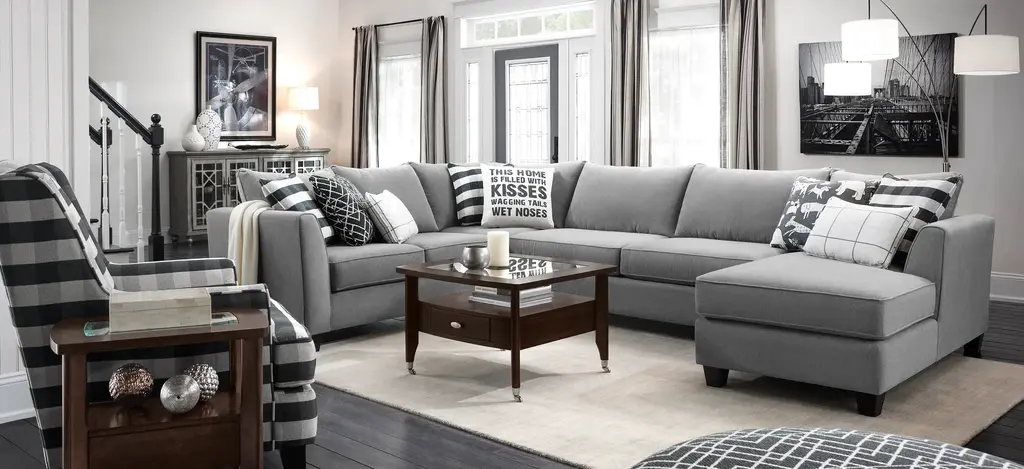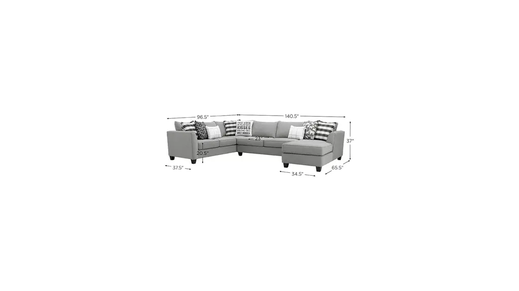 For a living room with style, comfort and spacious seating, the Daine 3-pc. sectional sofa will satisfy your needs. This sectional features gray upholstery that's both versatile and trendy. And, when it comes to comfort, Daine delivers with its huge seating area and extra accent pillows. With all these great features, you're in for a well-balanced room with character.