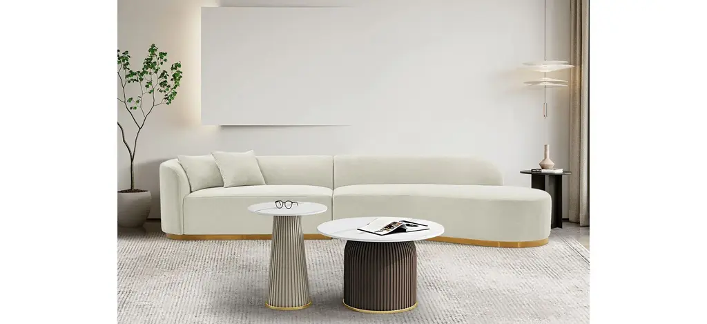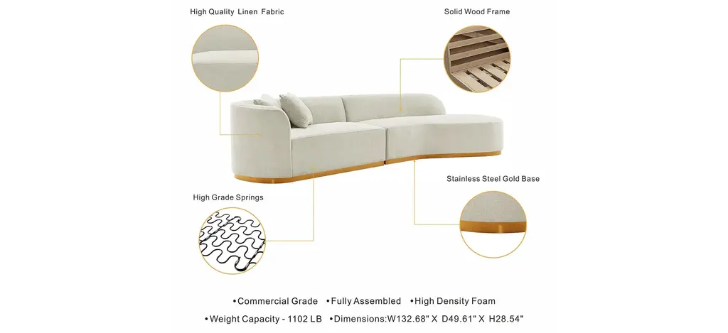 Transform your living room with the elegant Daria 2-pc. Sectional, designed for both style and comfort. This sectional comes in two pieces and boasts a striking golden mop base for added sophistication.