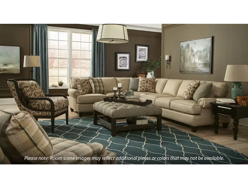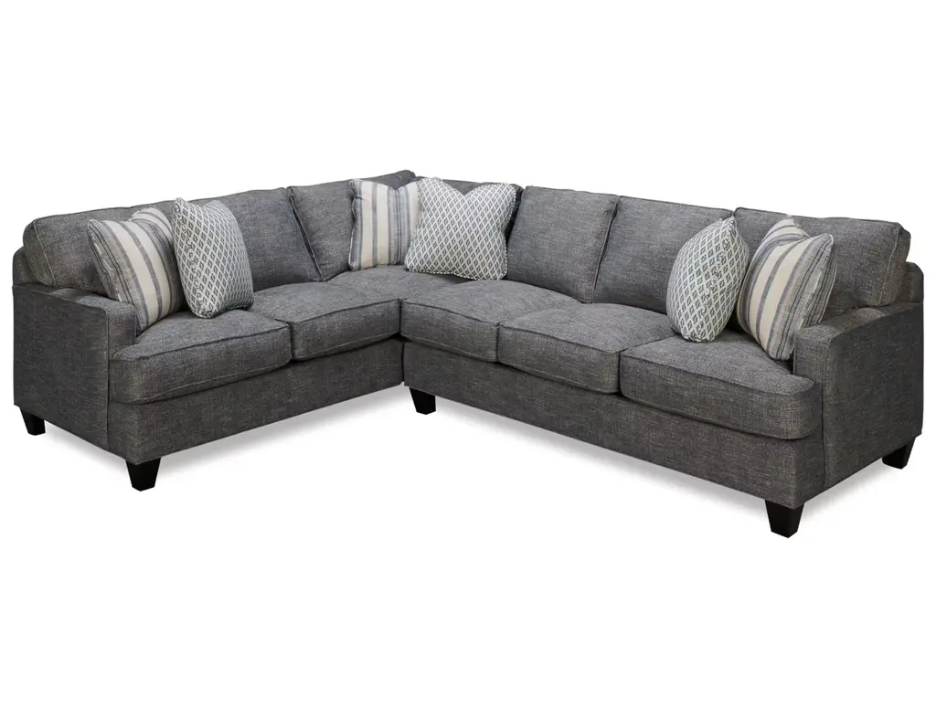Add coastal flair to your living room with the Craftmaster Furniture Design Series 2 Piece Sectional. This grey sectional is a classic silhouette that features welt trim, track arms, and tapered square legs. Six coordinating toss pillows bring added style and comfort. Other configurations and custom-order fabrics are available.