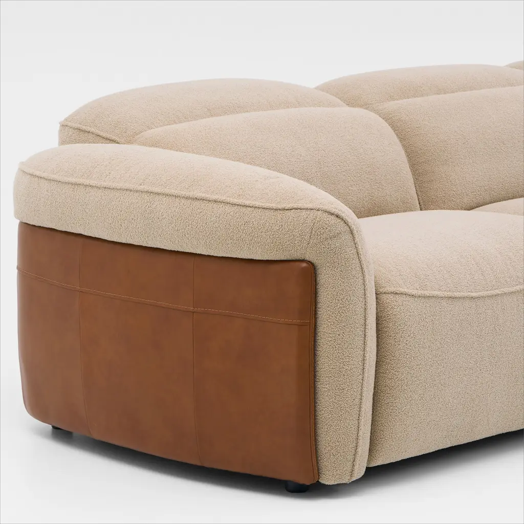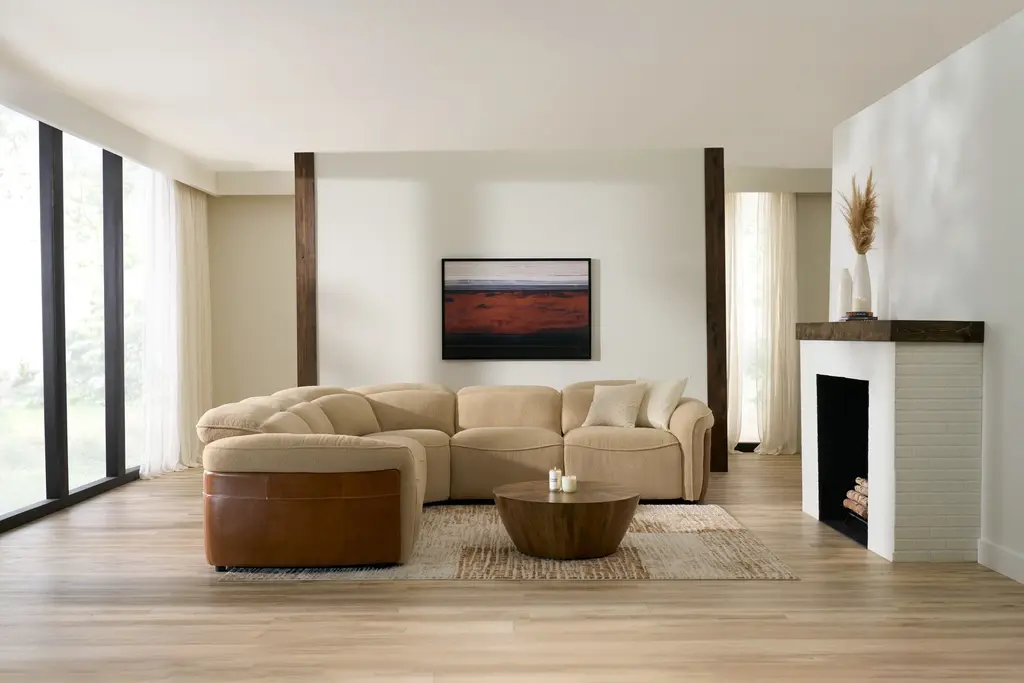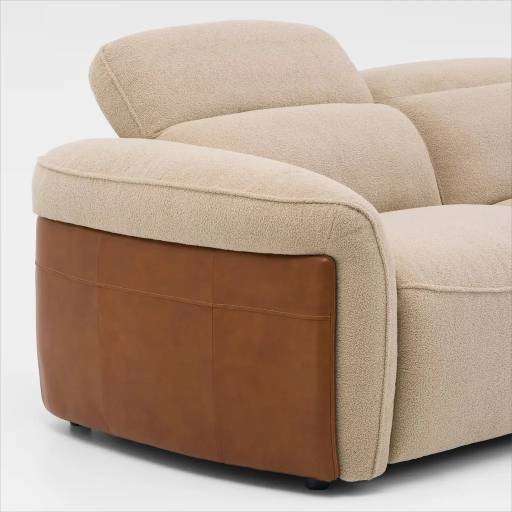 Sleek lines and smooth curves disguise our best-kept secret—it reclines. Our modern Diaz Collection has it all: stylish mixed materials (top-grain leather meets cozy sherpa!), deep seating, a sophisticated profile and the perfect amount of tech. Go ahead, curl up or stretch out.