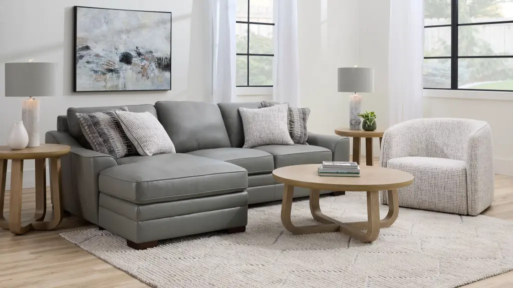 A contemporary classic, this Dorian leather 2-pc. sectional offers a beautiful and stately design that embodies cozy comfort and sophistication. It's soft, smooth and spacious, with proportions that are just right for family time and entertaining. The appeal of the Dorian collection can be expressed in various formats, depending only on your preferences and space.