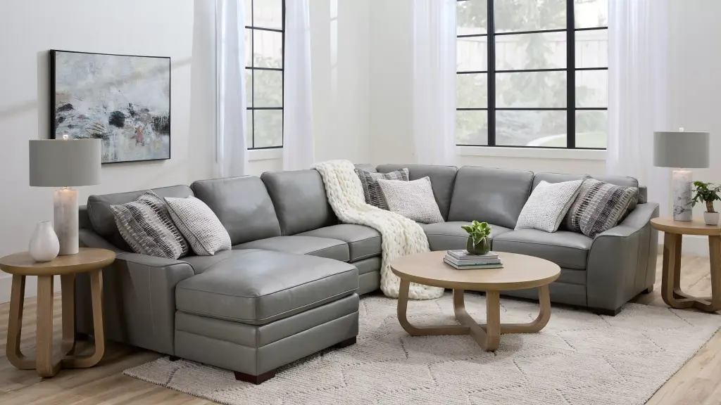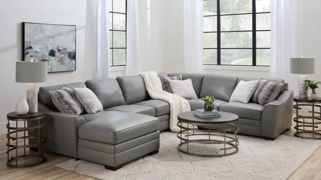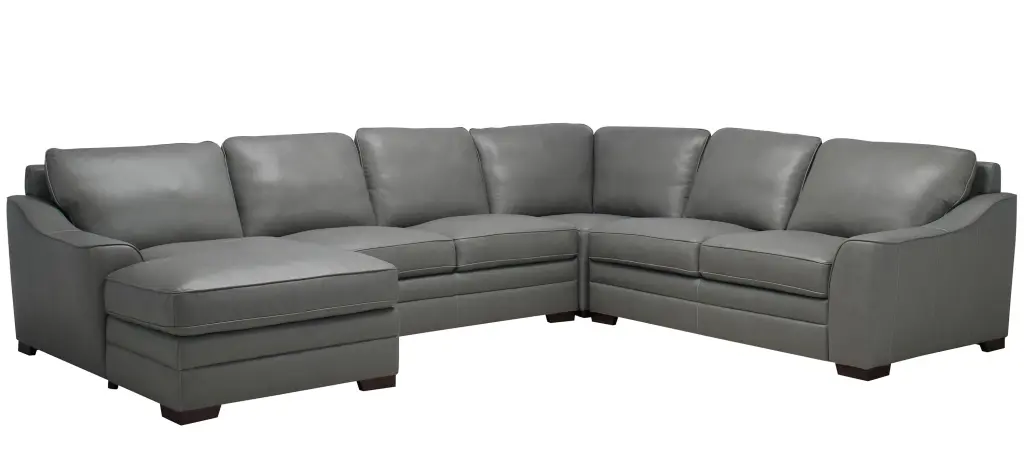 A contemporary classic, this Dorian leather 4-pc. sectional offers a beautiful and stately design that embodies cozy comfort and sophistication. It's soft, smooth and spacious, with proportions that are just right for family time and entertaining. The appeal of the Dorian collection can be expressed in various formats, depending only on your preferences and space.
