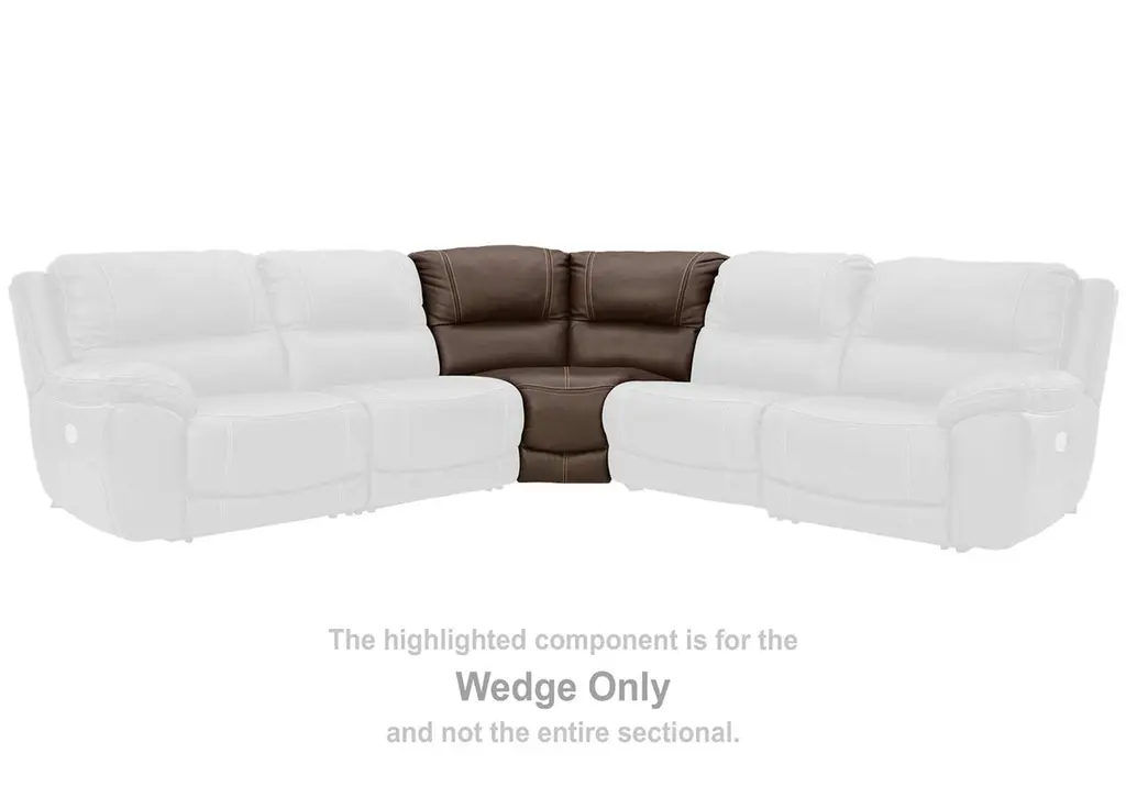 Load up on comfort in a cool, clean-lined and contemporary way with the Dunleith power reclining sectional in chocolate brown. Rest assured, the expertly matched leather and faux leather upholstery is enriched with a pebble grain effect for authentic appeal and enhanced with jumbo stitching for dramatic contrast. It features a one-touch power control with adjustable positions, along with an Easy View™ adjustable headrest that allows a primo view of the TV even when you're reclined. Extended ottomans provide extra length for leg comfort. A zero-draw USB plug-in at your fingertips lets you charge up as you chill out. Weight 408.000 lbs. (183.6kgs.)
