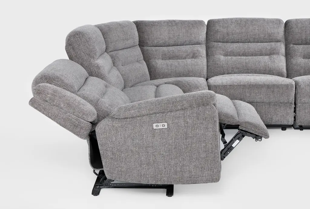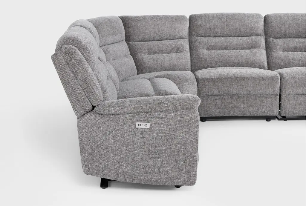 Experience head-to-toe comfort with our Dutton power reclining modular sectional, which is made for easy unwinding. While power reclining provides relaxation at the press of a button, quality construction ensures durability and longevity. The space-saving wall-hugging design features a solid hardwood frame and high-density foam seating for maximum support. Multiple color options allow you to choose the perfect hue, and USB charging offers added convenience.