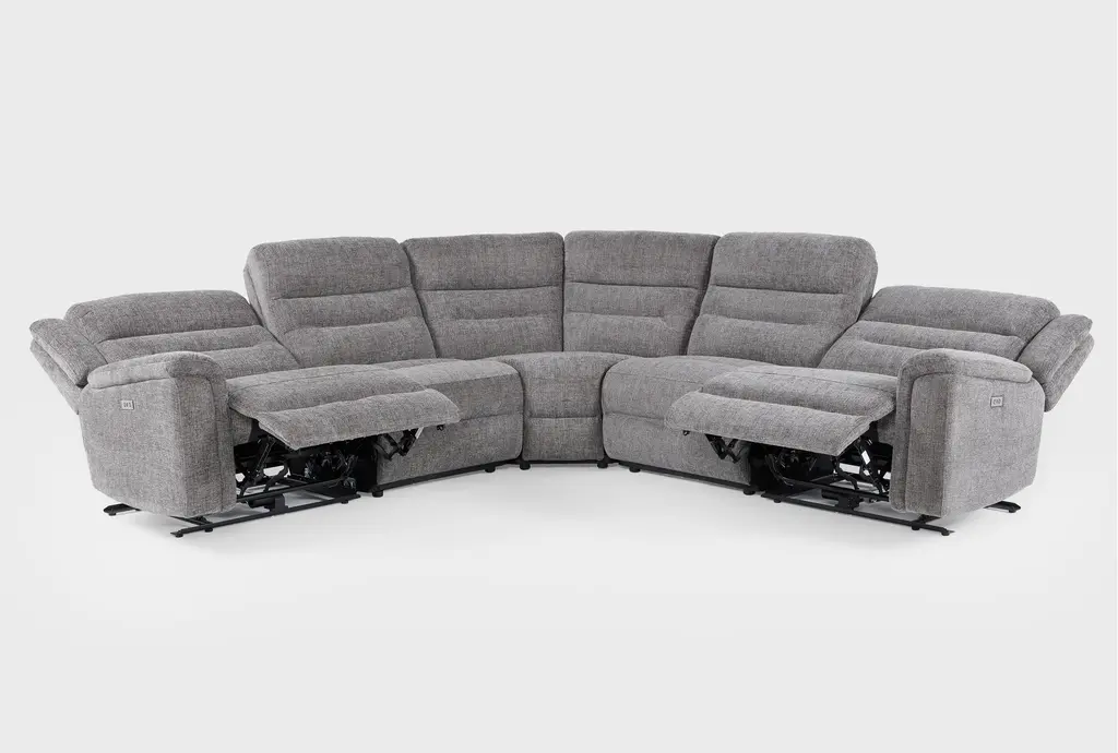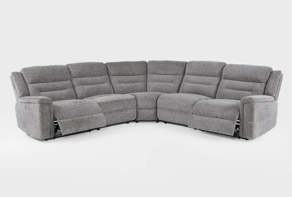 Dutton Grey Fabric 118" 5 Piece Power Reclining Modular Sectional With 2 Armless Chairs