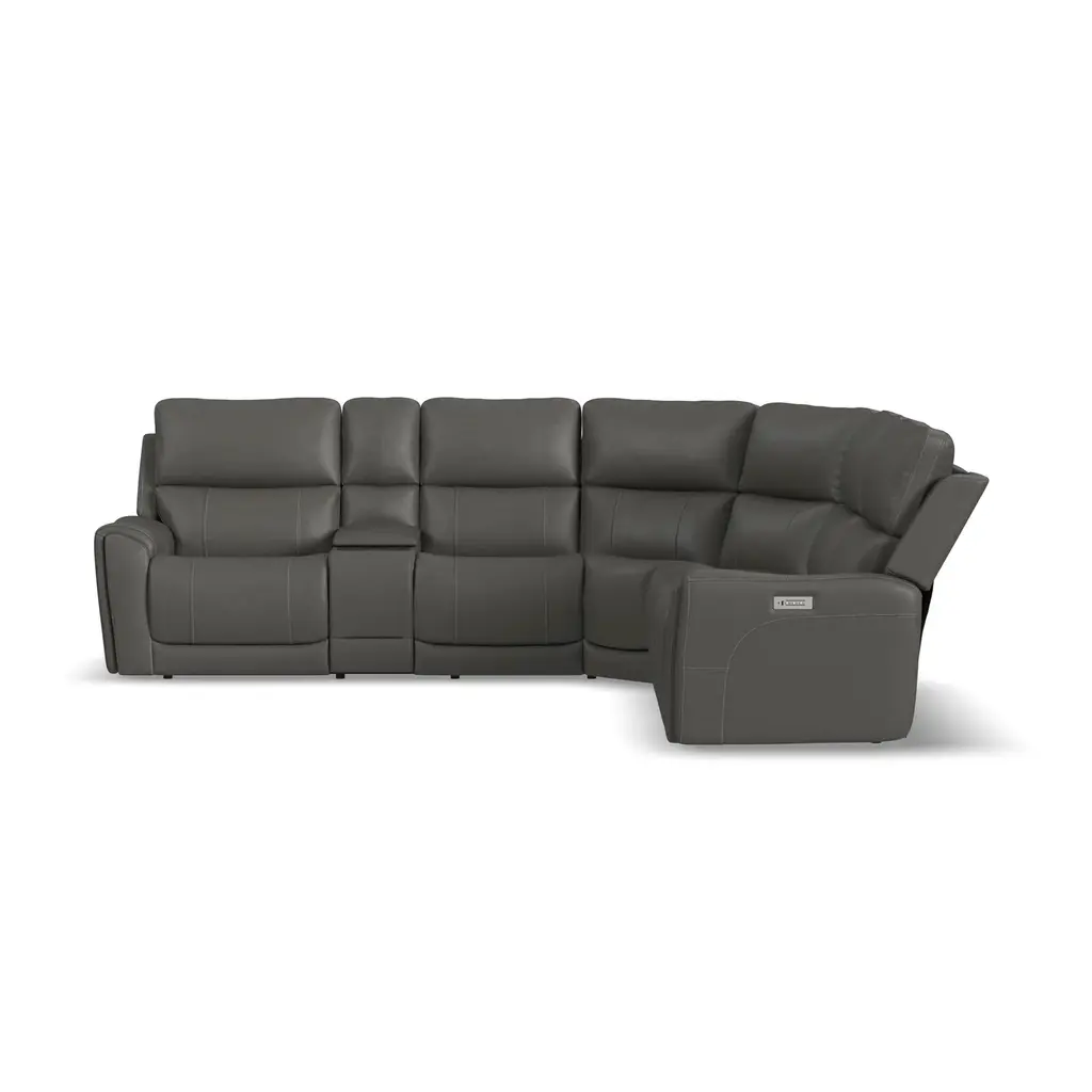 Double down on comfort with the Dylan 6 Piece Sectional featuring two power consoles. Each end offers Zero Gravity recline, wireless charging, and hidden cupholders, while the consoles provide extra storage and device ports. Designed with Flexsteel’s patented DualFlex spring system, it’s built for daily life and lasting durability.