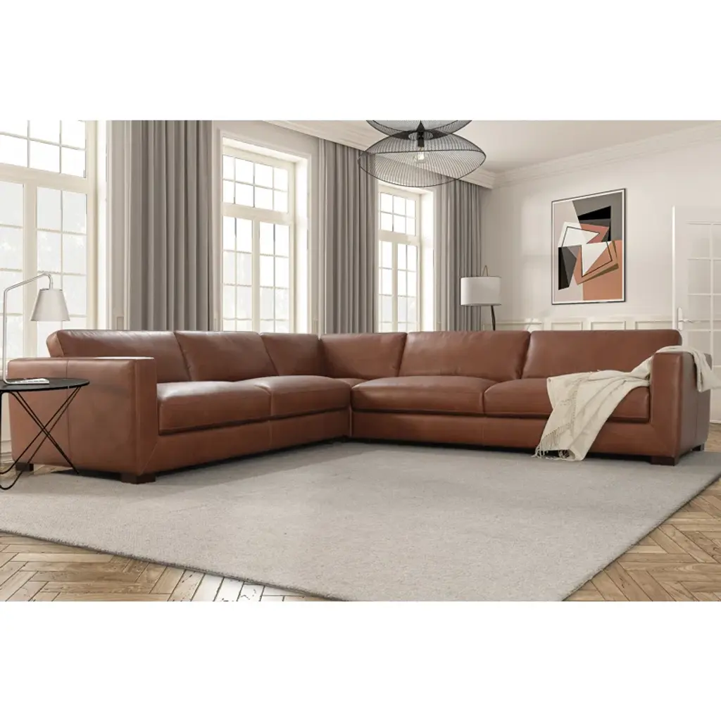 Effa Winsor Genuine Leather Square Arm 3 Piece Sectional