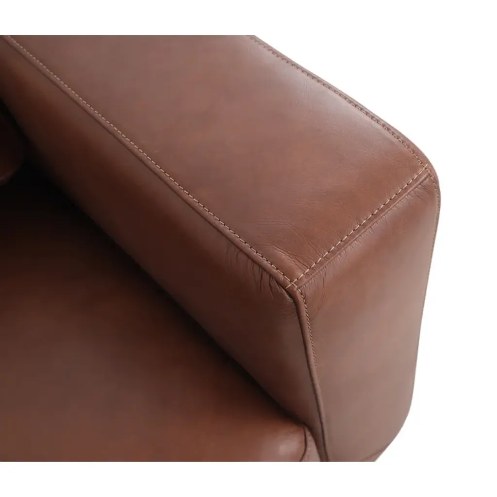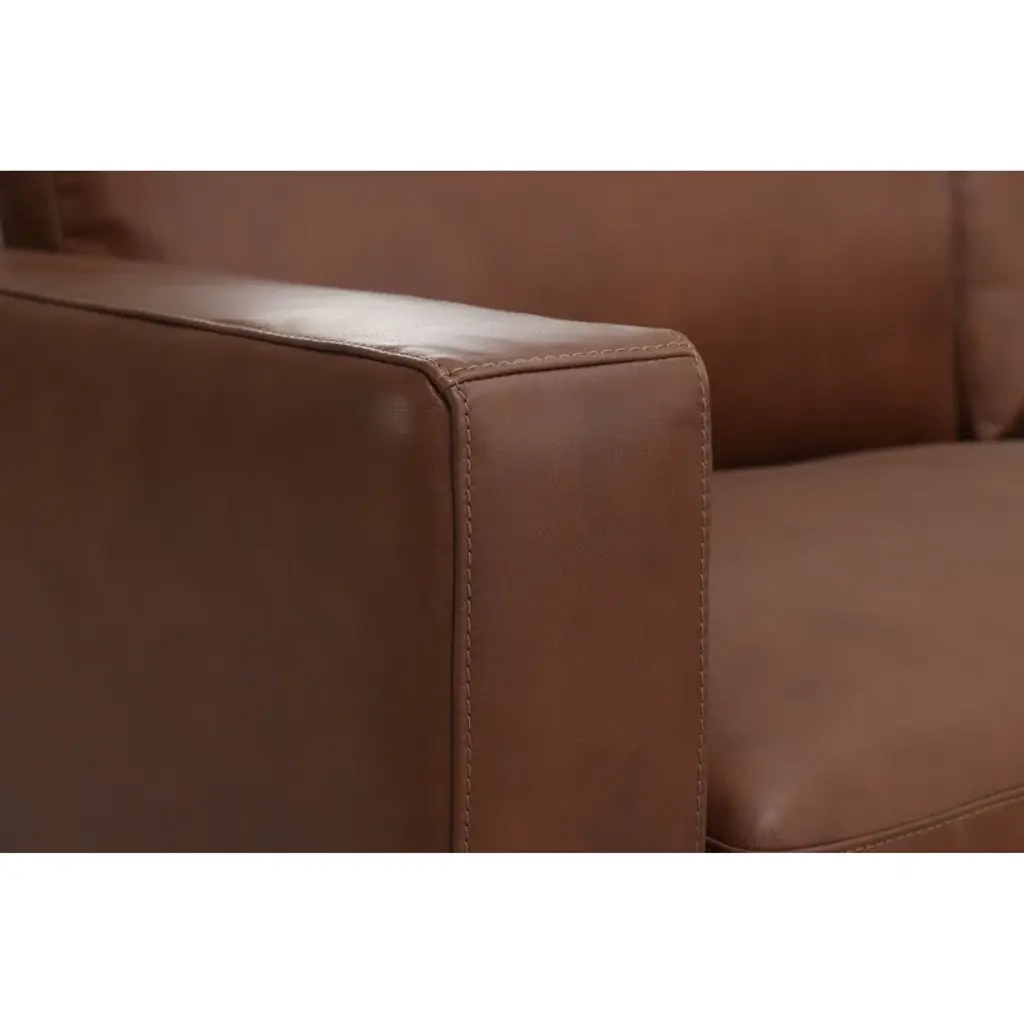 Known for luxury and style, clean lines, and a classic look, with top-grain genuine leather cover brings a great addition to your home or workspace. Featuring wide square arms for added comfort. Expertly crafted with a frame made of engineered wood, this piece is upholstered in top-grain leather, providing a luxe look and feel. The cushions are filled with foam and feather blend, ensuring a cozy spot for your living room.