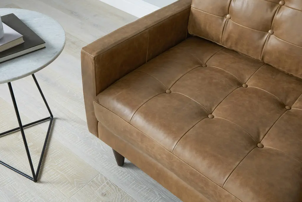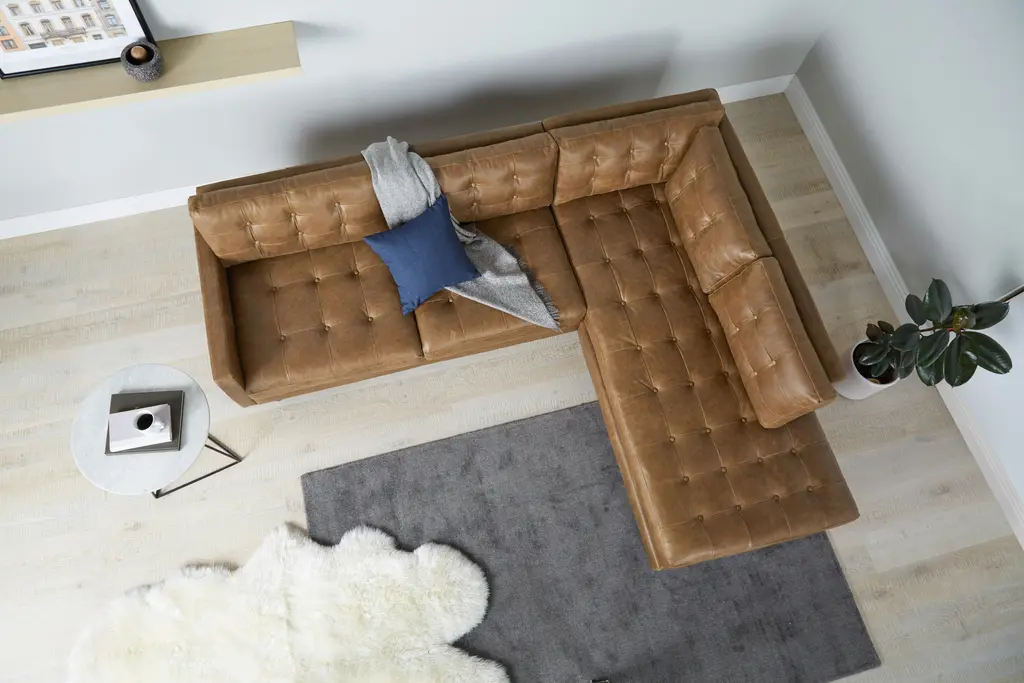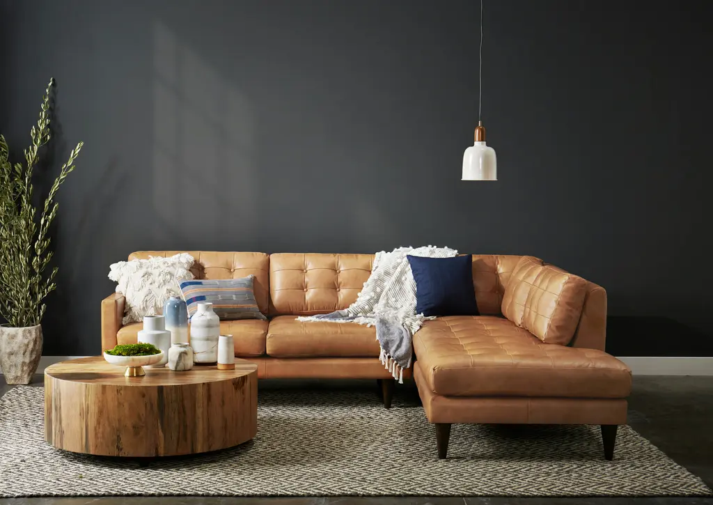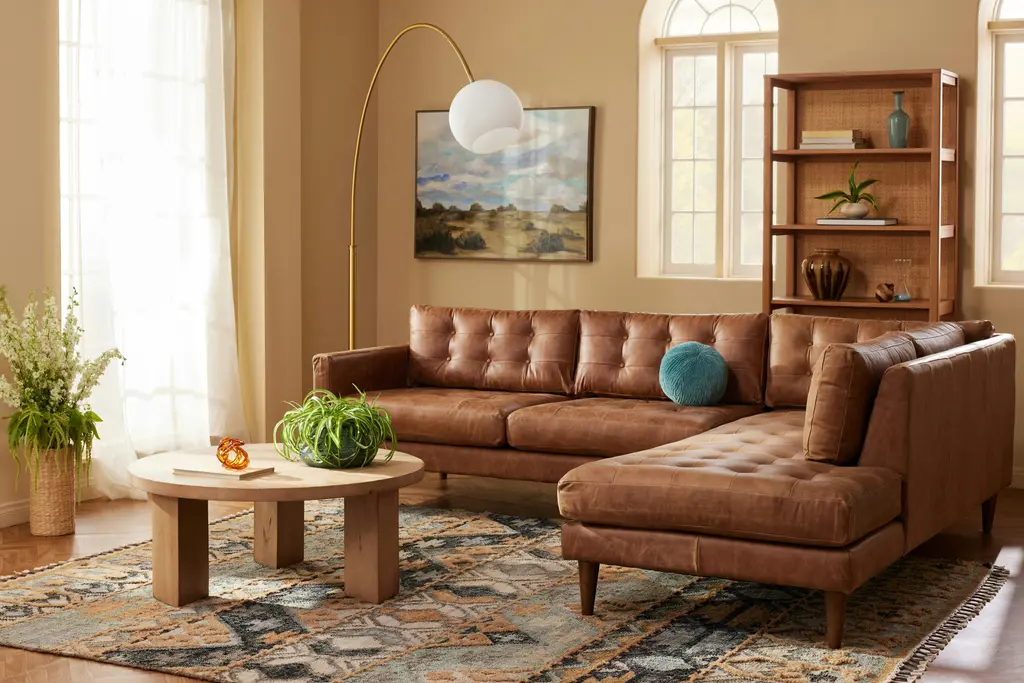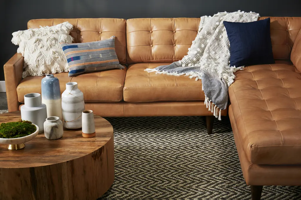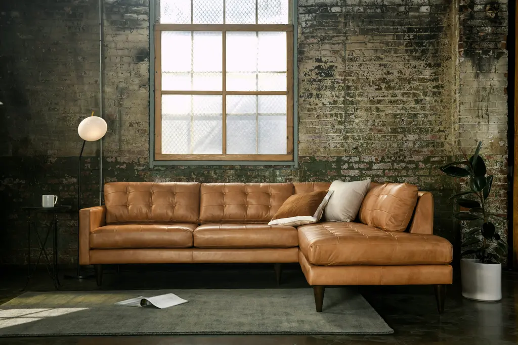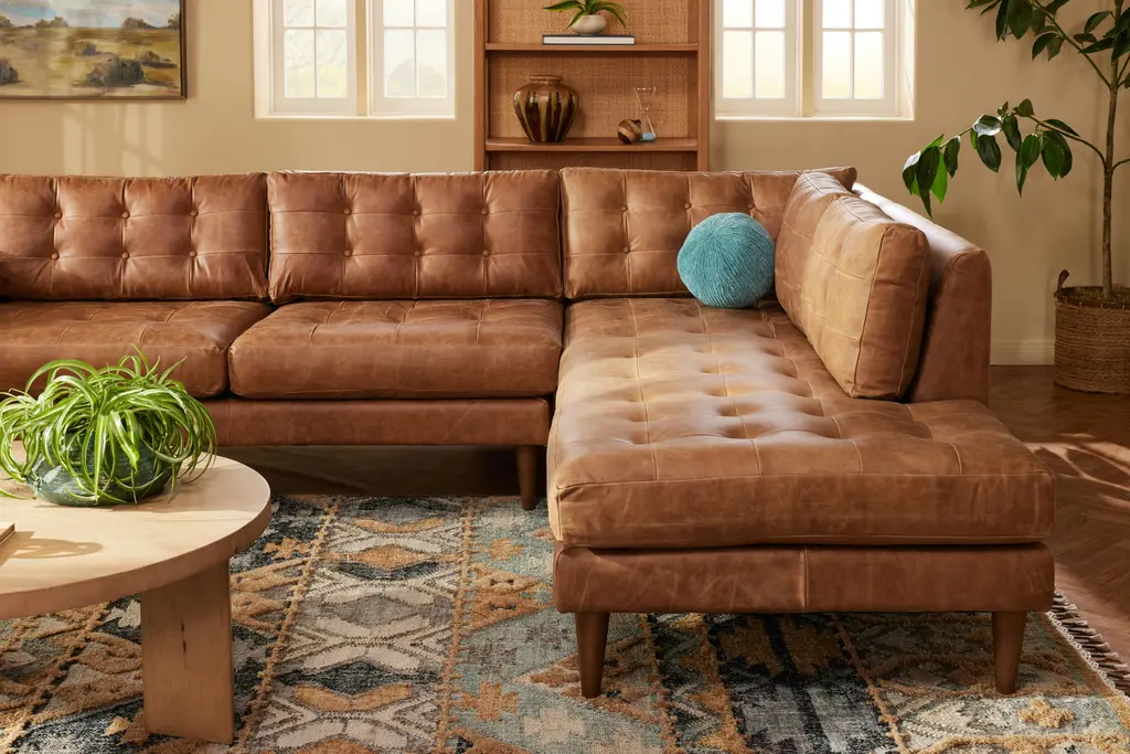 Showcase a flair for vintage charm and timeless comfort at your next gathering with the Eliot Leather Sectional with Bumper, a spacious masterclass in Mid-Century design. Enjoy a nightcap with friends or curl up with your favorite book upon the Eliot’s supportive cushions with tufted button detailing. This sophisticated sectional decked out in top-grain leather will quickly distinguish itself as the cornerstone of any living room.