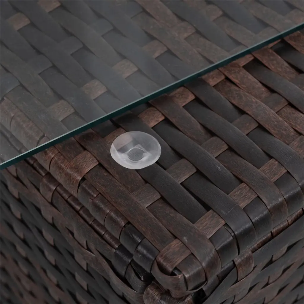 This small outdoor sectional sofa set is spacious enough to comfortably seat 4 friends. With its simple and classic design, it's perfect for trying out new styles for your gatherings. It's the ideal option for indoor or outdoor space, such as lawn, poolside, backyard, and garden. The entire patio sofa set is made of UV-resistant PE wicker. Its fine workmanship and high-quality materials allow it to withstand various weather changes. This exquisite wicker sofa set is the perfect choice for gathering with your family or friends. This patio conversation set can be set up in any type of combination, adapting to your outdoor setting. The tempered glass on the coffee table top is elegant and easy to clean. With thick cushions, you can sit on the chair comfortably. (Please remove your cushions in rain or snow weather since the inner sponge is Not Water Proof.) The modular designed sectional outdoor sofa and table set is a great option for smaller spaces.
