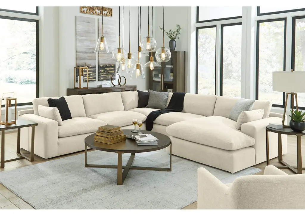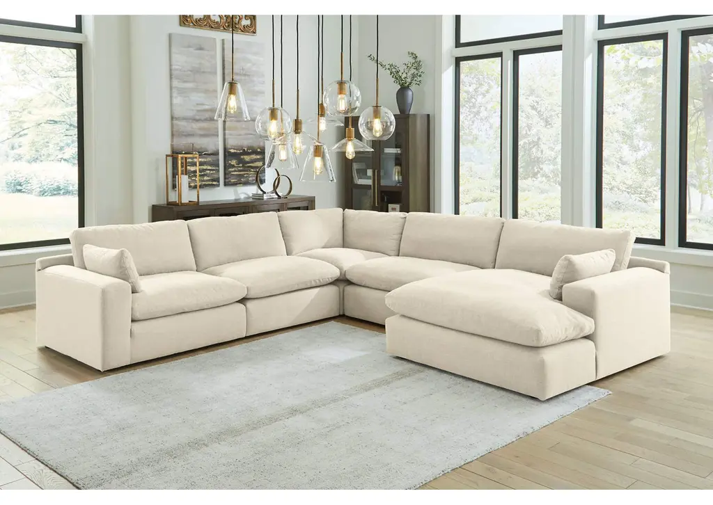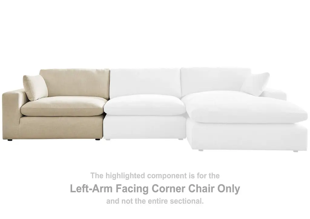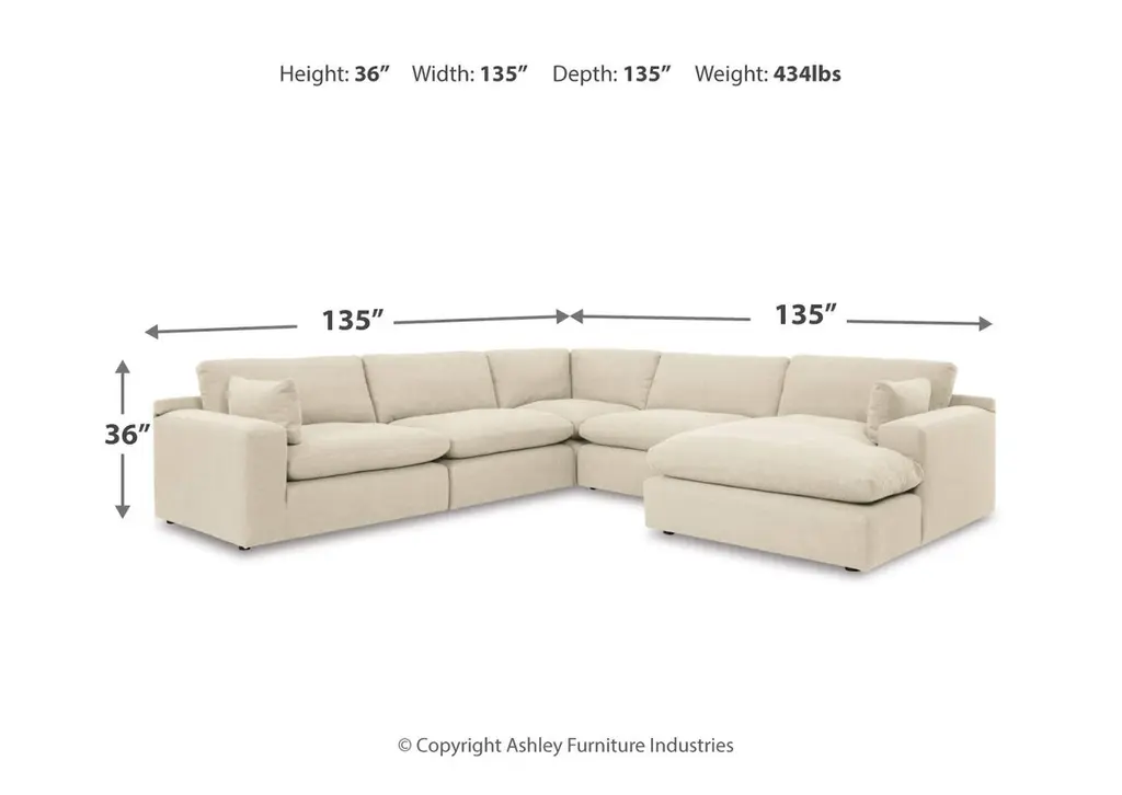 Down with uptown style. The Elyza sectional goes to town with a high-design aesthetic, sleek sophistication and sumptuous comfort that are temptingly affordable. Wide track arms, softened by plush side pillows, offer a welcoming look and feel, while back pillows and seat cushions with fluffy feather fill bring added flair and indulgence. Best of all, the modular design lets you stage the pieces solo or group them in various configurations to suit your mood. Weight 434.000 lbs. (195.3kgs.)