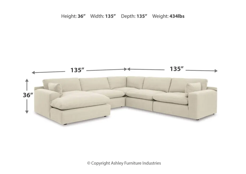 Down with uptown style. The Elyza sectional goes to town with a high-design aesthetic, sleek sophistication and sumptuous comfort that are temptingly affordable. Wide track arms, softened by plush side pillows, offer a welcoming look and feel, while back pillows and seat cushions with fluffy feather fill bring added flair and indulgence. Best of all, the modular design lets you stage the pieces solo or group them in various configurations to suit your mood. Weight 434.000 lbs. (195.3kgs.)