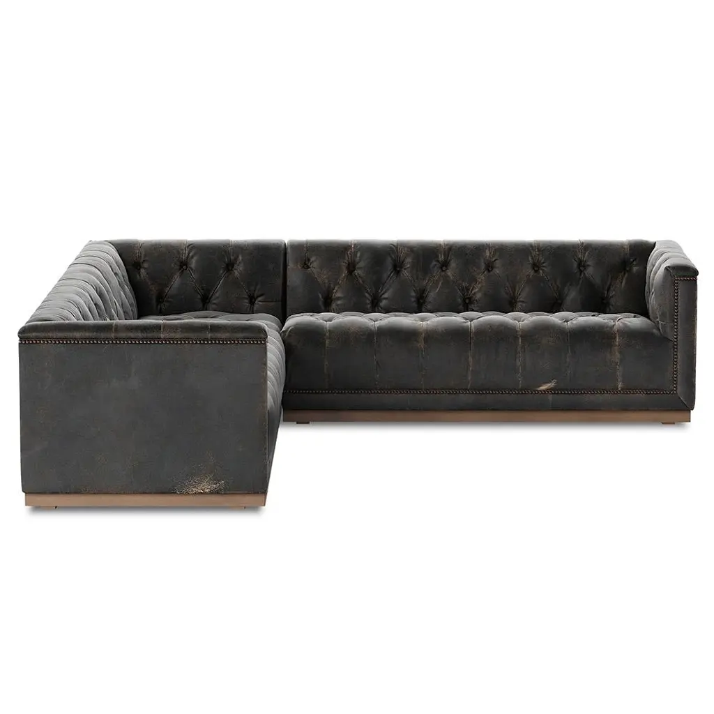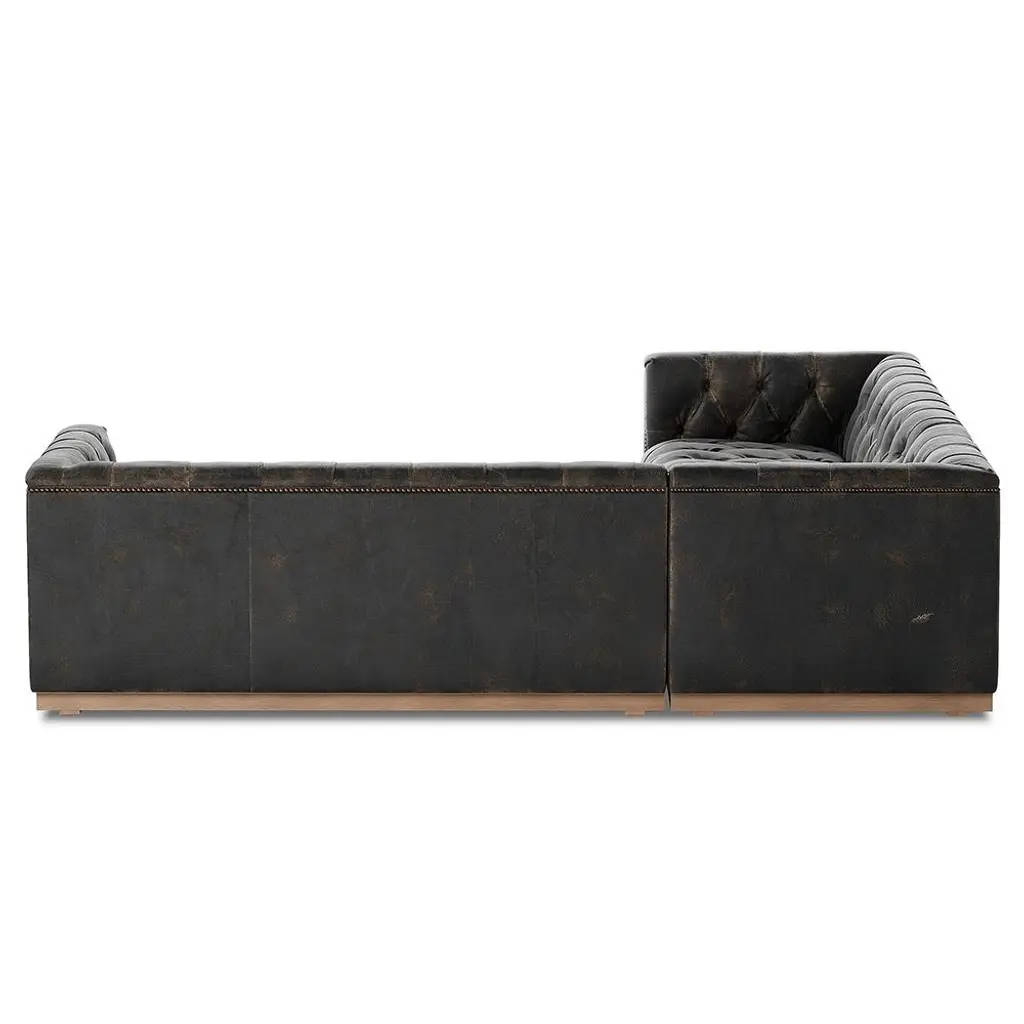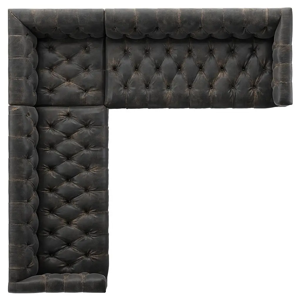 Emmy Rustic Black Leather Nailhead Trim 3 Piece Sectional Sofa - 101"wx101"d