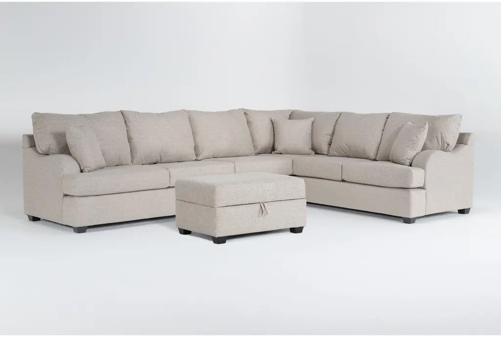 Esteban Beige Fabric 138" 2 Piece L-Shaped Sectional With Left Arm Facing Sofa & Storage Ottoman