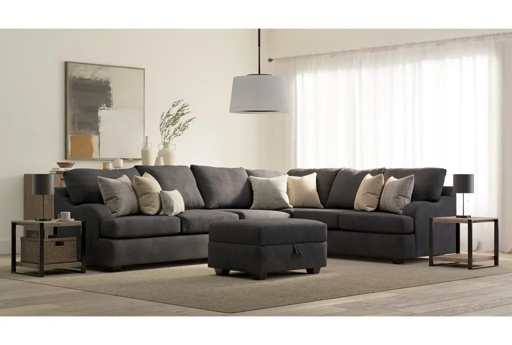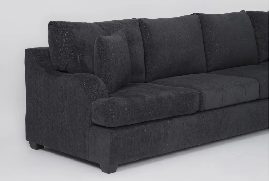 The Esteban III Midnight Black 2 Piece Sectional with Left Arm Facing Sofa & Ottoman is a stylish and practical addition to any living room. This sectional offers a casual style that blends seamlessly with various decor themes. The black fabric upholstery is soft and durable, ensuring comfort and longevity.